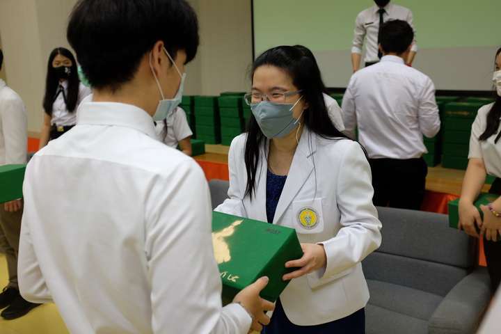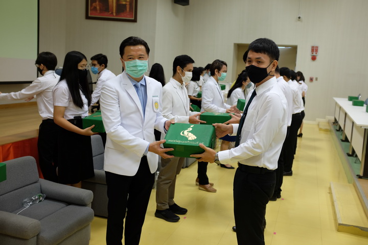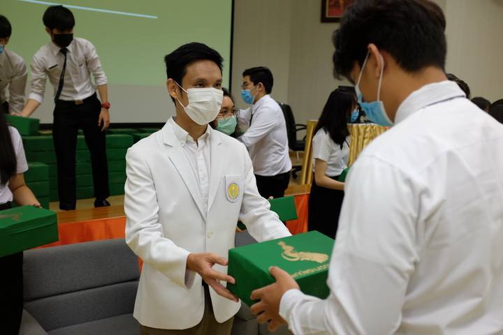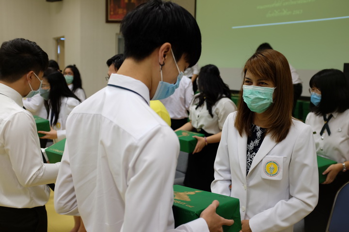 วันอาทิตย์ที่ 9 สิงหาคม 2563 เวลา 9.00 น. ศาสตราจารย์นายแพทย์ศิริเกษม ศิริลักษณ์ คณบดีคณะแพทยศาสตร์ เป็นประธานกล่าวในพิธีเปิดและให้โอวาทแก่นิสิต ในงาน “พิธีมอบสัญลักษณ์แก่นิสิตแพทย์ชั้นปีที่ 2 ประจำปีการศึกษา 2563” พร้อมนำทีมคณาจารย์เข้าร่วมมอบสัญลักษณ์แก่นิสิตแพทย์ กิจกรรมนี้มีวัตถุประสงค์เพื่อสร้างความภาคภูมิใจในความเป็นนิสิตแพทย์ สร้างความสัมพันธ์อันดีระหว่างรุ่นพี่กับรุ่นน้องและคณาจารย์ รวมถึงเป็นการแสดงออกถึงความรักความผูกพันซึ่งกันและกันของนิสิตภายในคณะ และบ่งบอกถึงความเป็นนิสิตแพทย์ คณะแพทยศาสตร์ มหาวิทยาลัยนเรศวร โดยมีนิสิตแพทย์เข้าร่วมพิธีรับมอบ จำนวน 175 ราย ณ ห้องประชุม CC2-801 และ CC2-802 ชั้น 8 อาคารเฉลิมพระเกียรติ 7 รอบพระชนมพรรษา 2 คณะแพทยศาสตร์ มหาวิทยาลัยนเรศวร |