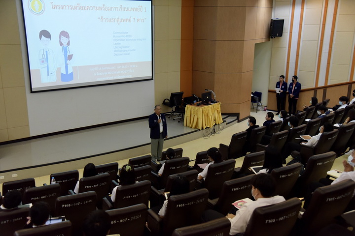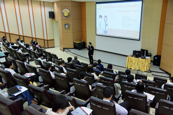 วันศุกร์ที่ 18 กันยายน 2563 เวลา 09.00 น. ศาสตราจารย์นายแพทย์ศิริเกษม ศิริลักษณ์ คณบดีคณะแพทยศาสตร์ มหาวิทยาลัยนเรศวร เป็นประธานกล่าวเปิดโครงการเตรียมความพร้อมการเรียนแพทย์ปี 1 “ก้าวแรกสู่แพทย์ 7 ดาว” ซึ่งจัดขึ้นโดยงานพัฒนานิสิตและงานกิจการนิสิต เพื่อเป็นการสร้างเสริมพัฒนาให้นิสิตแพทย์ได้เรียนรู้ทักษะต่างๆ ก่อให้เกิดคุณลักษณะที่พึงประสงค์ 7 ประการ โดยมี รองศาสตราจารย์นายแพทย์ ดร.ชุมนุม พรหมขัติแก้ว ผู้ทรงคุณวุฒิพิเศษประจำคณะแพทยศาสตร์ มหาวิทยาลัยนเรศวร ร่วมกล่าวต้อนรับและให้แง่คิดในการดำเนินชีวิตและการเรียนรู้ให้กับนิสิตแพทย์ใหม่