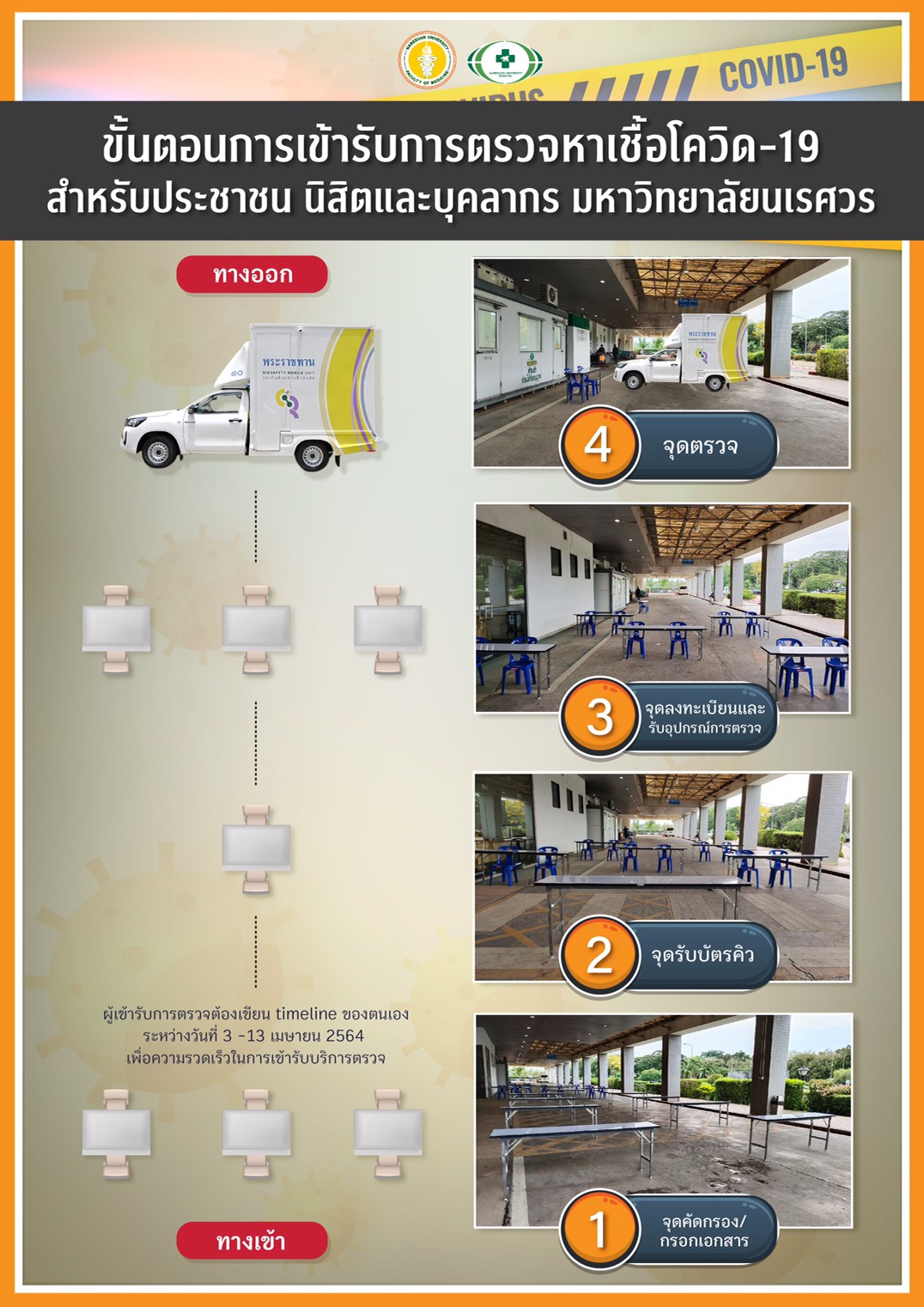 ขั้นตอนการเข้ารับการตรวจหาเชื้อโควิด-19 สำหรับประชาชน นิสิตและบุคลากร มหาวิทยาลัยนเรศวร