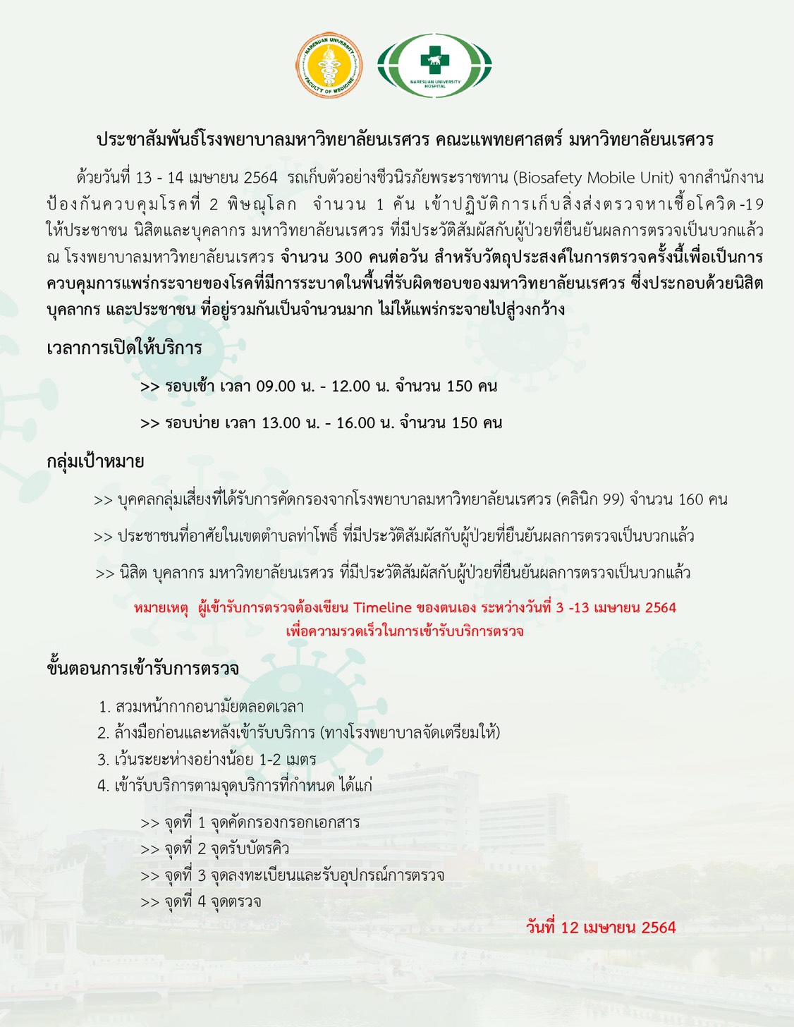 สำหรับประชาชน นิสิตและบุคลากร มหาวิทยาลัยนเรศวร
