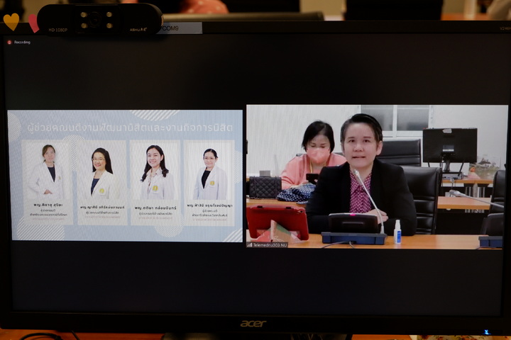 จากนั้นเป็นการแนะนำงานพัฒนานิสิตและงานกิจการนิสิต และการบรรยายเรื่อง ข้อบังคับและประกาศด้านวินัยนิสิต โดย ผู้ช่วยศาสตราจารย์แพทย์หญิงสุภินดา ศิริลักษณ์ รองคณบดีฝ่ายกิจการนิสิต,   การบรรยายเรื่อง แนวทางการเรียนการสอนสำหรับนิสิตแพทย์และการวัดและการประเมินผลของแพทยศาสตรบัณฑิต โดย อาจารย์นายแพทย์จิโรจน์ จิรานุกูล ผู้ช่วยคณบดีฝ่ายการศึกษาก่อนปริญญา ชั้นปรีคลินิก,  การบรรยายเรื่อง ทุนการศึกษาสำหรับนิสิตแพทย์ อาจารย์ที่ปรึกษา และวัคซีนสำหรับนิสิตแพทย์ โดย อาจารย์แพทย์หญิงญาศินี อภิรักษ์นภานนท์ ผู้ช่วยคณบดีฝ่ายกิจการนิสิต,   การบรรยายเรื่อง ศูนย์ให้คำปรึกษาและสนับสนุนนิสิตแพทย์ (ศูนย์ MSC) โดย อาจารย์แพทย์หญิงตติมา กล่อมจันทร์ ผู้ช่วยคณบดีฝ่ายพัฒนานิสิต,  การบรรยายเรื่อง กิจกรรมเสริมหลักสูตรนิสิตแพทย์ และทรานสคริปกิจกรรม โดย อาจารย์แพทย์หญิงฟ้าสินี อรุณโรจน์ปัญญา ผู้ช่วยคณบดีฝ่ายเครือข่ายและวิเทศสัมพันธ์ และร่วมตอบคำถามให้กับผู้ปกครองและนิสิตแพทย์ ณ ห้องปฏิบัติการ TeleMed ชั้น 3 อาคารเฉลิมพระเกียรติ 7 รอบ พระชนมพรรษา 2 คณะแพทยศาสตร์ มหาวิทยาลัยนเรศวร  |