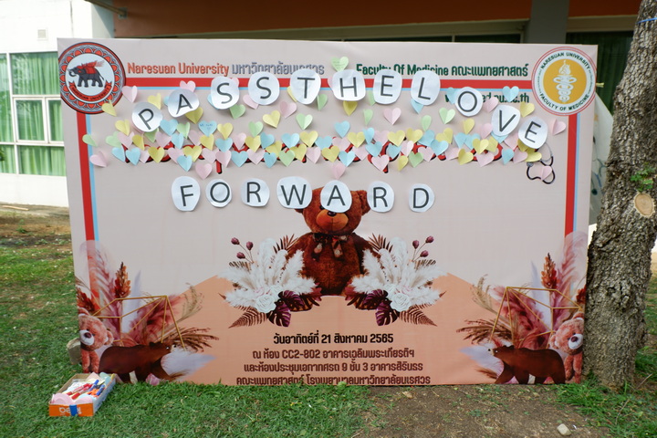 “Pass The Love Forward” เป็นการส่งความรัก ความสุข ความปรารถนาดี ให้แก่กัน โดยเรียนเชิญอาจารย์ที่ปรึกษามาร่วมงาน พร้อมเตรียมของขวัญมอบให้แก่นิสิตแพทย์ในที่ปรึกษา พร้อมด้วยนิสิตแพทย์ก็สามารถที่จะแสดงความรัก ความขอบคุณ ความรู้สึกที่ดีต่ออาจารย์ที่ปรึกษา ด้วยการมอบการ์ดอวยพรหรือของที่ระลึกให้แก่อาจารย์ที่ปรึกษาได้เช่นกัน