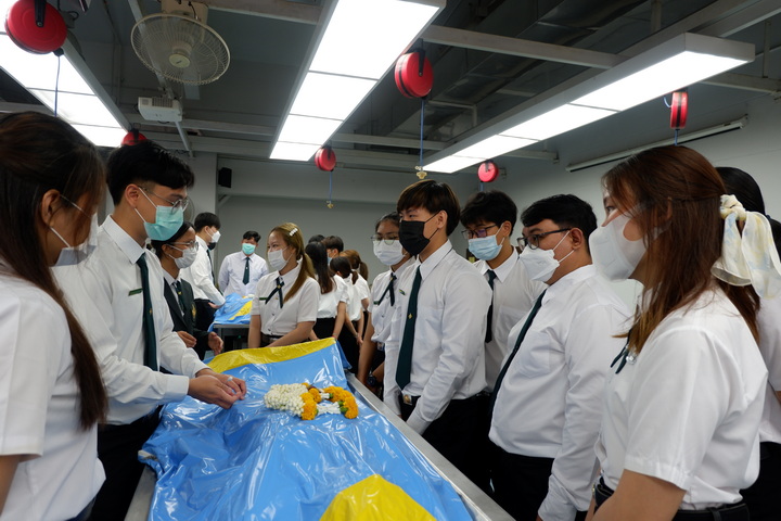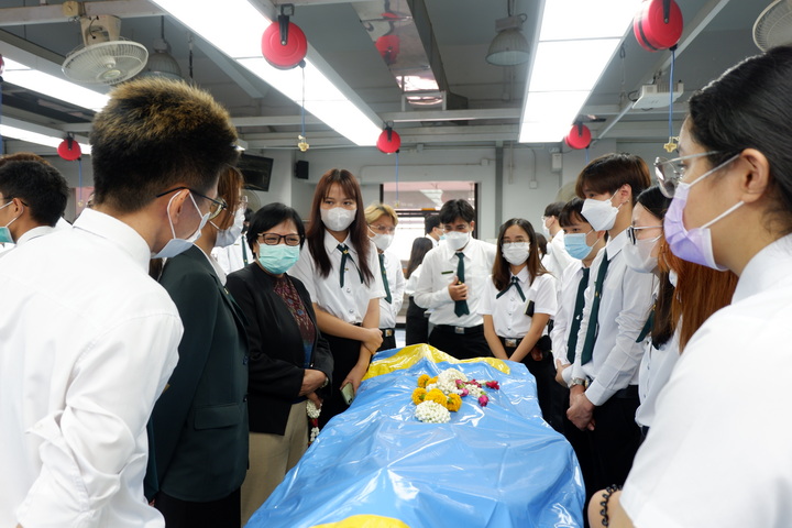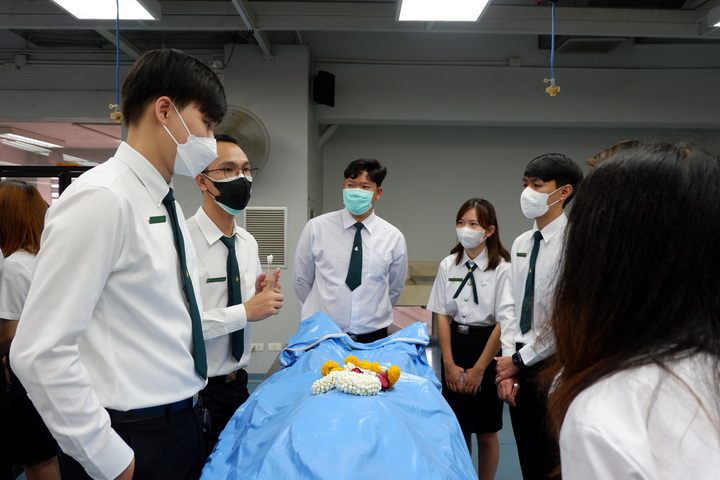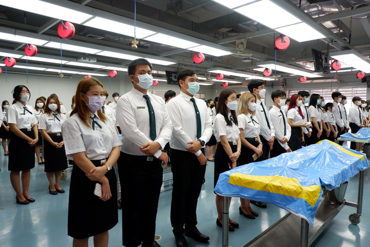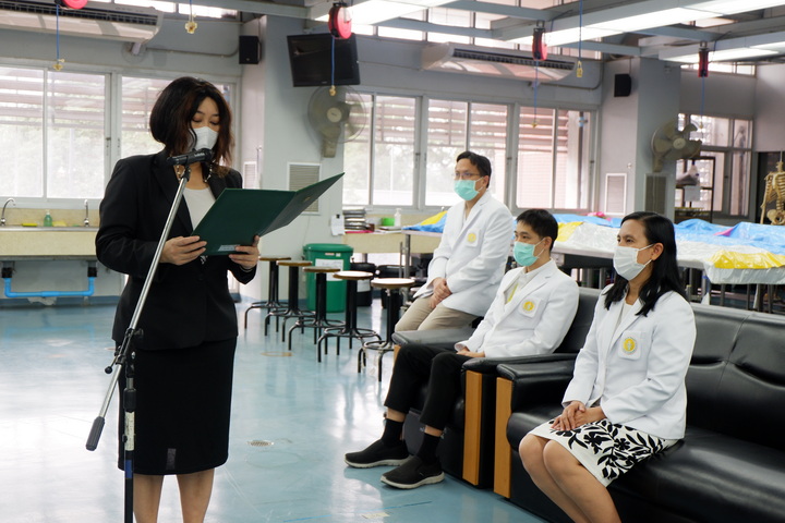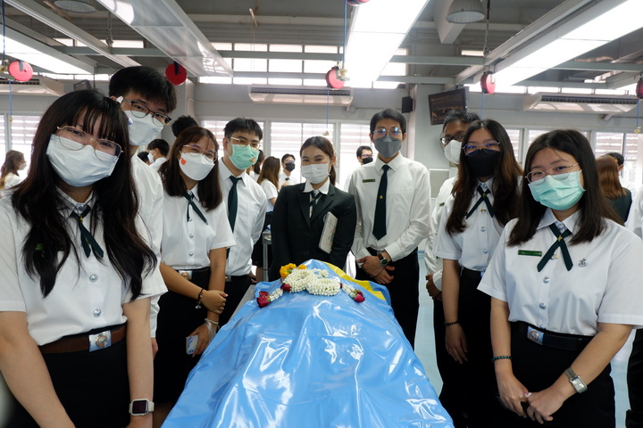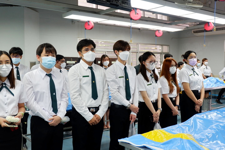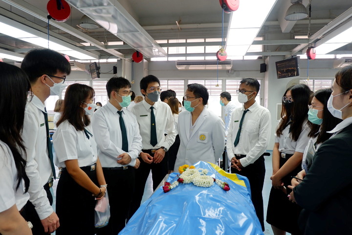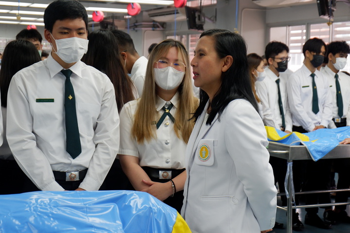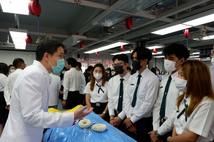 การจัดโครงการปฏิญาณจรรยาบรรณนิสิตแพทย์ต่อร่างอาจารย์ใหญ่ในครั้งนี้ มีวัตุประสงค์เพื่อให้นิสิตแพทย์ชั้นปีที่ 2 (นิสิตแพทย์รุ่นที่ 28 และนิสิตแพทย์ Strengthening tract รุ่นที่ 20) ประจำปีการศึกษา 2566 ได้กล่าวคำปฏิญาณจรรยาบรรณนิสิตนักศึกษาแพทย์แห่งประเทศไทย (Thai Medical Student's Code of Conduct) เพื่อเป็นการปลูกฝังเสริมสร้างคุณธรรม จริยธรรม ให้แก่นิสิตแพทย์ และระลึกถึงคุณงามความดีของอาจารย์ใหญ่ ผู้ซึ่งเสียสละตนให้นิสิตแพทย์ได้ศึกษาและเรียนรู้ทางด้านกายวิภาคศาสตร์ โดยนิสิตแพทย์ได้ร่วมยืนสงบนิ่งไว้อาลัยและวางพวงมาลัยบนร่างอาจารย์ใหญ่เพื่อแสดงความรู้คุณ โดยมีคณาจารย์คอยช่วยแนะแนวทางการเรียนในแต่ละโต๊ะปฏิบัติการ เพื่อให้แนวทางในการเรียนรู้การศึกษาวิชาชีพแพทย์ต่อไป |