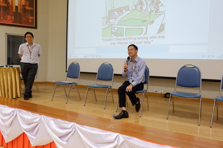 กิจกรรมภายในโครงการ มีการเสวนาในหัวข้อ “Career Path : พูดคุยตอบคำถามเกี่ยวกับเส้นทางการเป็นแพทย์ใช้ทุนและแพทย์เฉพาะทาง” โดยมี ผู้ช่วยศาสตราจารย์ นายแพทย์รวิสุต เดียวอิศเรศ รองคณบดีฝ่ายกิจการนิสิต แพทย์หญิงฟ้าสินี อรุณโรจน์ปัญญา ผู้ช่วยคณบดีฝ่ายกิจการนิสิต รวมถึงอาจารย์แพทย์จากภาควิชาต่างๆ และตัวแทน Intern จากคณะแพทยศาสตร์ มหาวิทยาลัยนเรศวร ร่วมเสวนาพูดคุยเพื่อเป็นแนวทางในการศึกษาต่อสำหรับนิสิตแพทย์ในอนาคต ณ ห้องประชุม CC2 - 801 อาคารเฉลิมพระเกียรติ 7 รอบ พระชนมพรรษา 2 คณะแพทยศาสตร์ มหาวิทยาลัยนเรศวร |