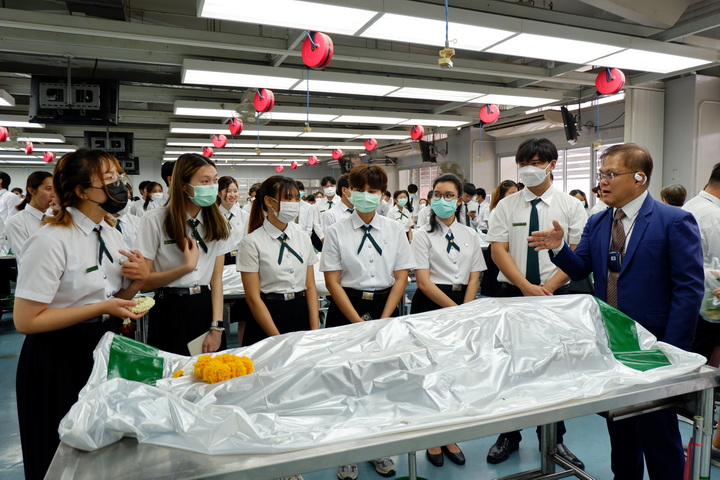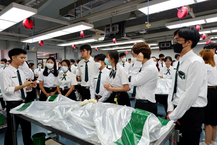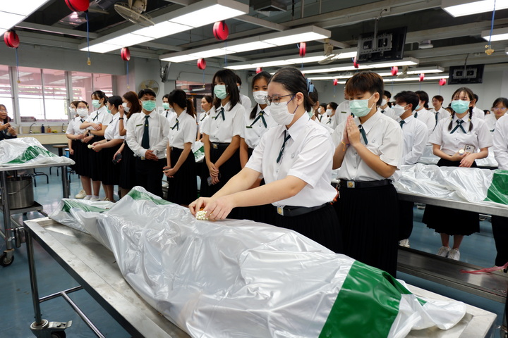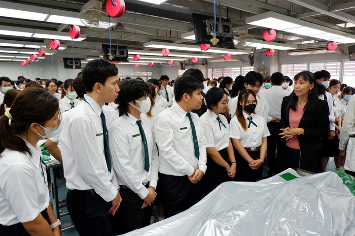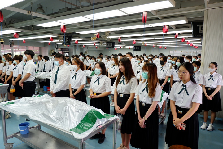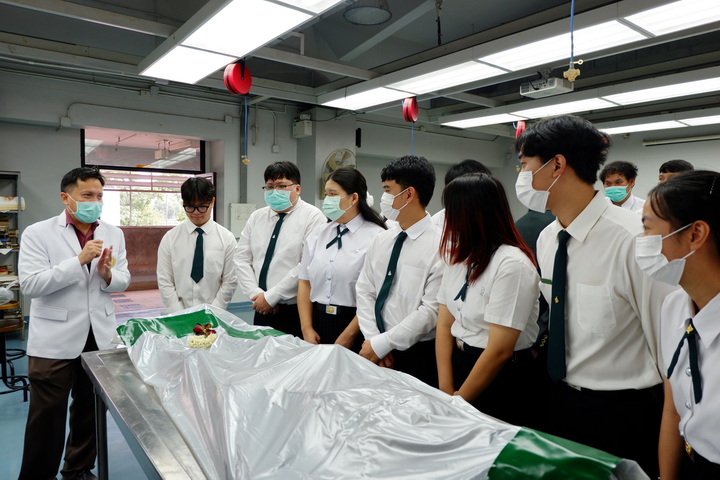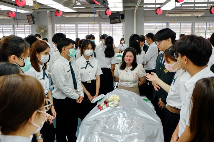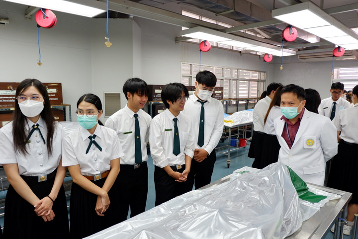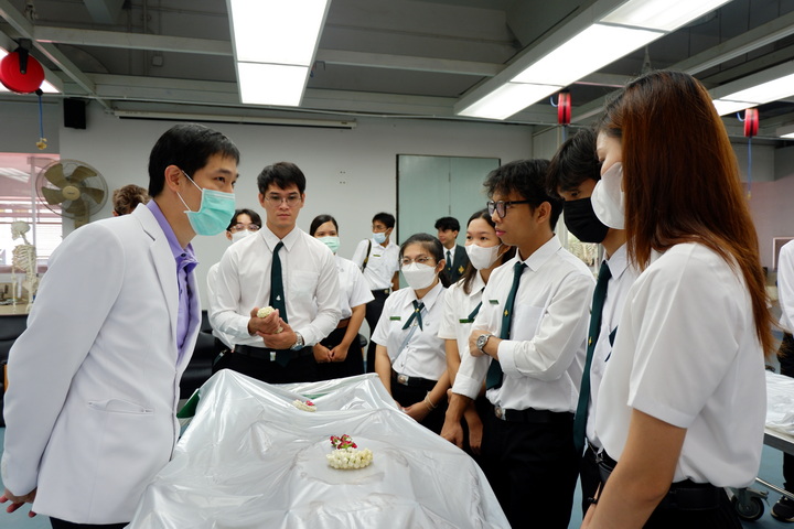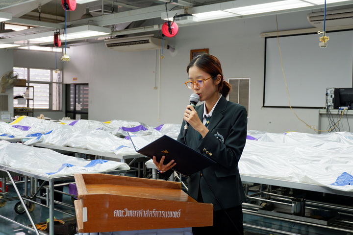 การจัดโครงการปฏิญาณจรรยาบรรณนิสิตแพทย์ต่อร่างอาจารย์ใหญ่ในครั้งนี้ มีวัตุประสงค์เพื่อให้นิสิตแพทย์ชั้นปีที่ 2 (นิสิตแพทย์รุ่นที่ 29 และนิสิตแพทย์ Strengthening tract รุ่นที่ 21) ประจำปีการศึกษา 2567 ได้กล่าวคำปฏิญาณจรรยาบรรณนิสิตนักศึกษาแพทย์แห่งประเทศไทย (Thai Medical Student's Code of Conduct) เพื่อเป็นการปลูกฝังเสริมสร้างคุณธรรม จริยธรรม ให้แก่นิสิตแพทย์ และระลึกถึงคุณงามความดีของอาจารย์ใหญ่ ผู้ซึ่งเสียสละตนให้นิสิตแพทย์ได้ศึกษาและเรียนรู้ทางด้านกายวิภาคศาสตร์ โดยนิสิตแพทย์ได้ร่วมยืนสงบนิ่งไว้อาลัย และวางพวงมาลัยบนร่างอาจารย์ใหญ่ เพื่อแสดงความรู้คุณ โดยมีคณาจารย์คอยช่วยแนะแนวทางการเรียนในแต่ละโต๊ะปฏิบัติการ เพื่อให้แนวทางในการเรียนรู้การศึกษาวิชาชีพแพทย์ต่อไป |