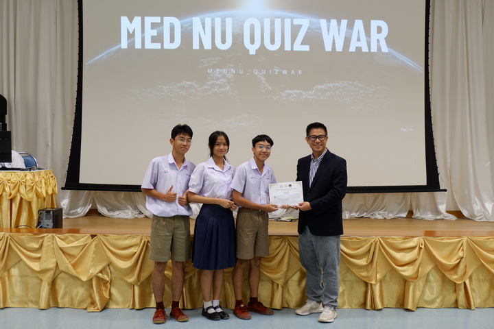 วันศุกร์ที่ 23 สิงหาคม 2567 ชมรมวิชาการ สโมสรนิสิตคณะแพทยศาสตร์ มหาวิทยาลัยนเรศวร จัดโครงการตอบปัญหาวิทยาศาสตร์การแพทย์ ประจำปี 2567 เพื่อให้นักเรียนที่สนใจ ได้รับความรู้ทางด้านวิทยาศาสตร์ทางการแพทย์ ทักษะกระบวนการทางวิทยาศาสตร์ในการตัดสินใจแก้ปัญหา และตระหนักเห็นความสำคัญของวิทยาศาสตร์ โดยมี นายแพทย์ไพสิฐ โกสุม ผู้ช่วยคณบดีฝ่ายพัฒนานิสิต เป็นผู้กล่าวเปิดโครงการ และ ผู้ช่วยศาสตราจารย์นายแพทย์ยุทธพงศ์ พุทธรักษา ผู้ช่วยคณบดีฝ่ายกิจการพิเศษและสื่อสารองค์กร ที่ปรึกษาโครงการ เป็นผู้กล่าวปิดโครงการ และมอบเกียรติบัตรพร้อมรางวัลให้แก่โรงเรียนที่ได้รับรางวัล โดยมีโรงเรียนในระดับชั้นมัธยมศึกษาตอนปลายเข้าร่วมกิจกรรมแข่งขันตอบปัญหาวิทยาศาสตร์การแพทย์ ณ ห้องประชุม CC2-801 ชั้น 8 อาคารเฉลิมพระเกียรติ 7 รอบ พระชนมพรรษา 2 คณะแพทยศาสตร์ มหาวิทยาลัยนเรศวร