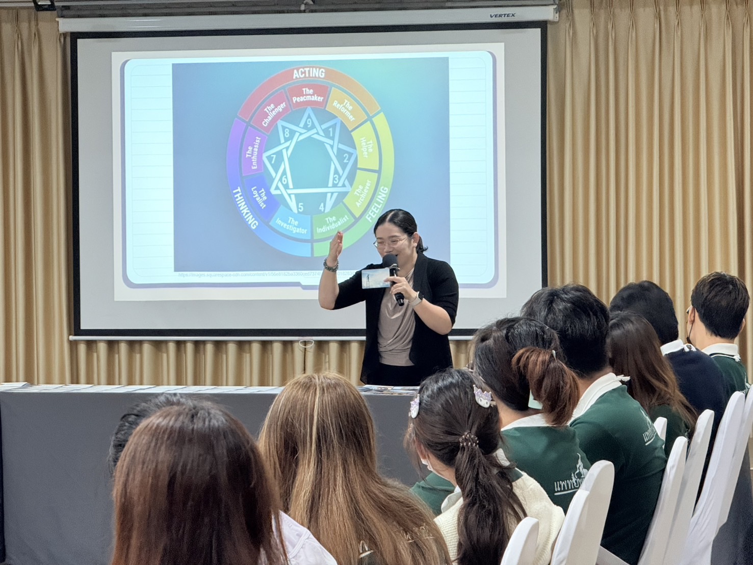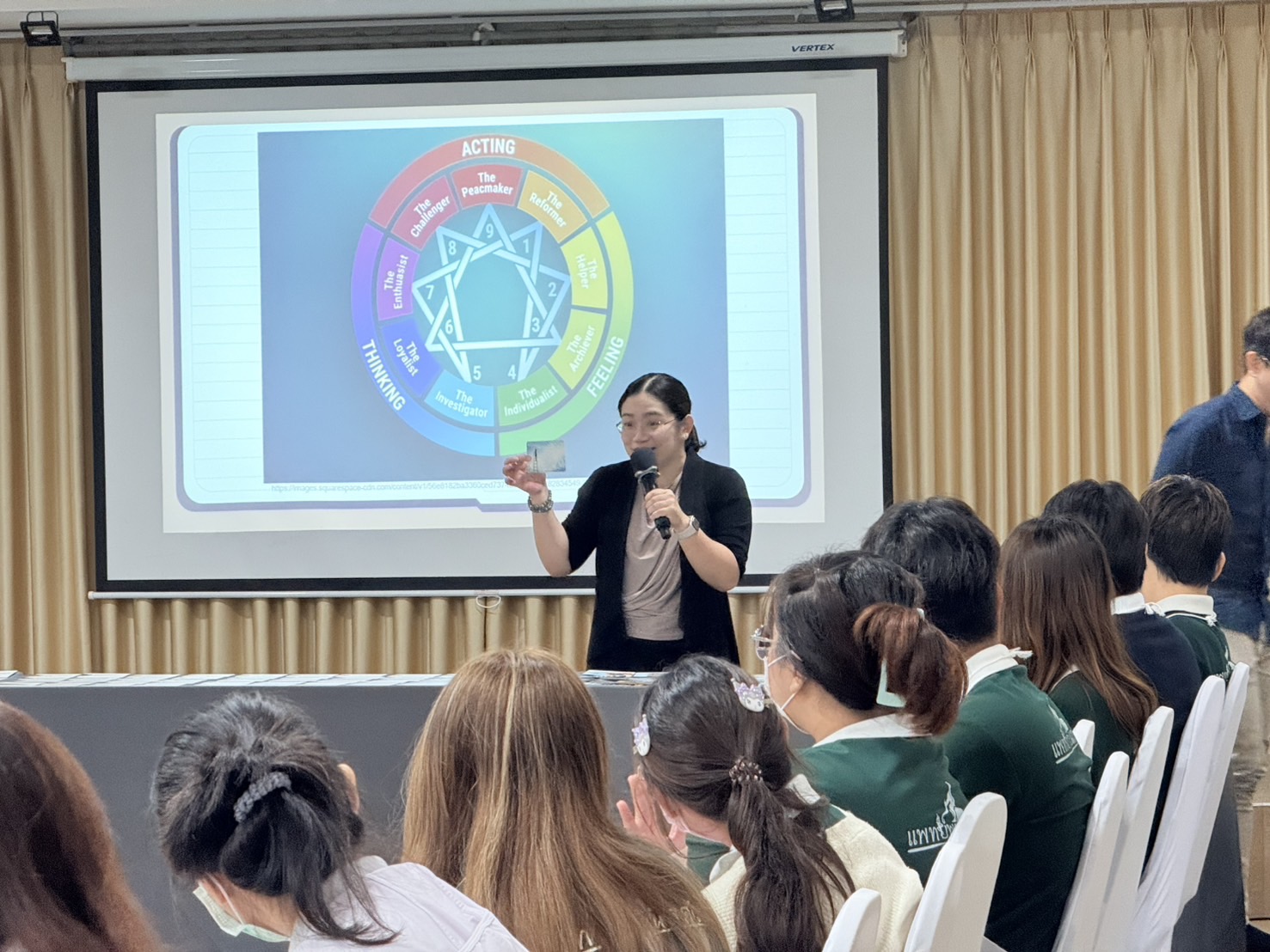ภายในโครงการฯ มีการจัดกิจกรรมนพลักษณ์ (Enneagram) เพื่อให้นิสิตได้เรียนรู้และเข้าใจทั้งตนเองและผู้อื่นผ่านลักษณ์ทั้ง 9 ซึ่งได้รับเกียรติจากวิทยากรทั้ง 3 ท่านจากภาควิชาจิตเวชศาสตร์ โรงพยาบาลมหาวิทยาลัยนเรศวร มาให้ความรู้แก่นิสิต ได้แก่ พญ.ฟ้าสินี อรุณโรจน์ปัญญา, พญ.ปุณยนุช ผลเงินชัย และนพ.ภูมิ โชคกิตติวัฒน์ นอกจากนี้ยังมีการประชุมเพื่อวางแผนแนวทางในการจัดกิจกรรมและโครงการต่างๆของนิสิตตลอดประจำปีการศึกษา 2568 |