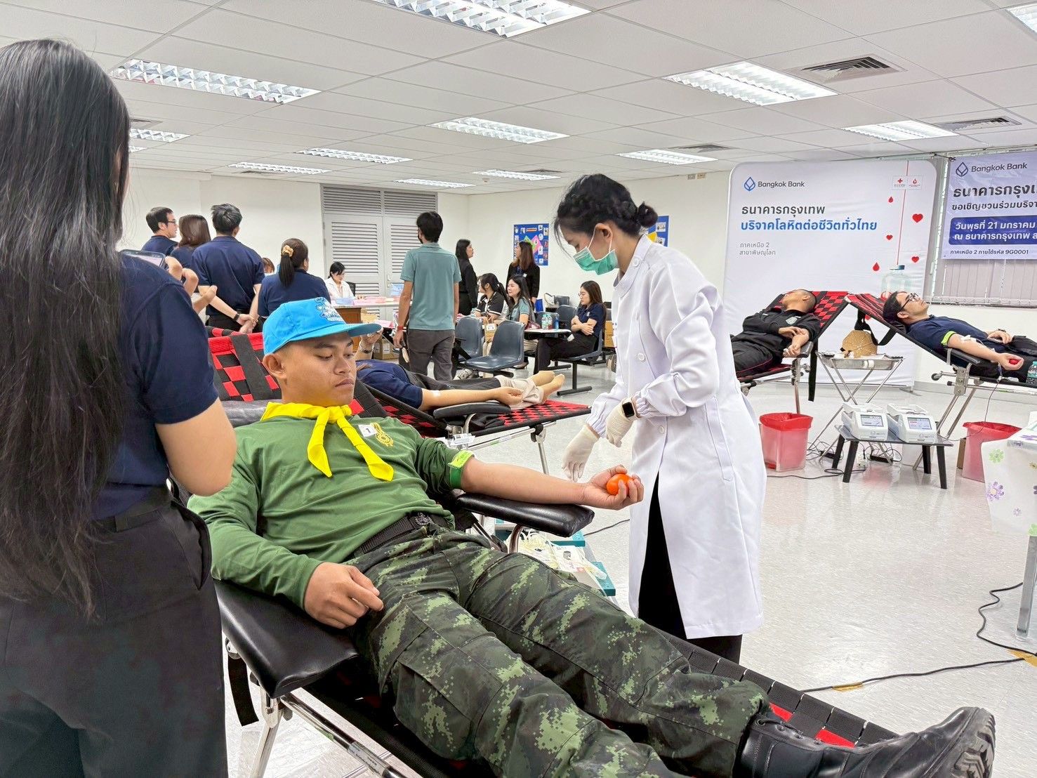 งานธนาคารเลือด ฝ่ายพยาธิวิทยาคลินิกโรงพยาบาลมหาวิทยาลัยนเรศวรร่วมกับธนาคารกรุงเทพธนาคารกรุงเทพ จำกัด (มหาชน) สาขาพิษณุโลก จัดกิจกรรมบริจาคโลหิต ภายใต้โครงการ “ธนาคารกรุงเทพบริจาคโลหิตต่อชีวิตทั่วไทย” ซึ่งนับเป็นกิจกรรมที่มีคุณค่าและเป็นประโยชน์อย่างยิ่งต่อสังคมและผู้ป่วยที่รอคอยโลหิตเพื่อการรักษา การจัดกิจกรรมในครั้งนี้ได้รับความร่วมมือและความสนใจจากผู้บริหาร พนักงานและประชาชนเป็นอย่างดีมีผู้เข้าร่วมโครงการทั้งสิ้น 67 ท่าน และสามารถบริจาคโลหิตได้จำนวน 52 ท่าน ได้รับโลหิตรวมทั้งสิ้น 23,400 มิลลิลิตร ซึ่งจะนำไปช่วยเหลือผู้ป่วยและสำรองโลหิตให้กับโรงพยาบาลได้อย่างมีประสิทธิภาพ