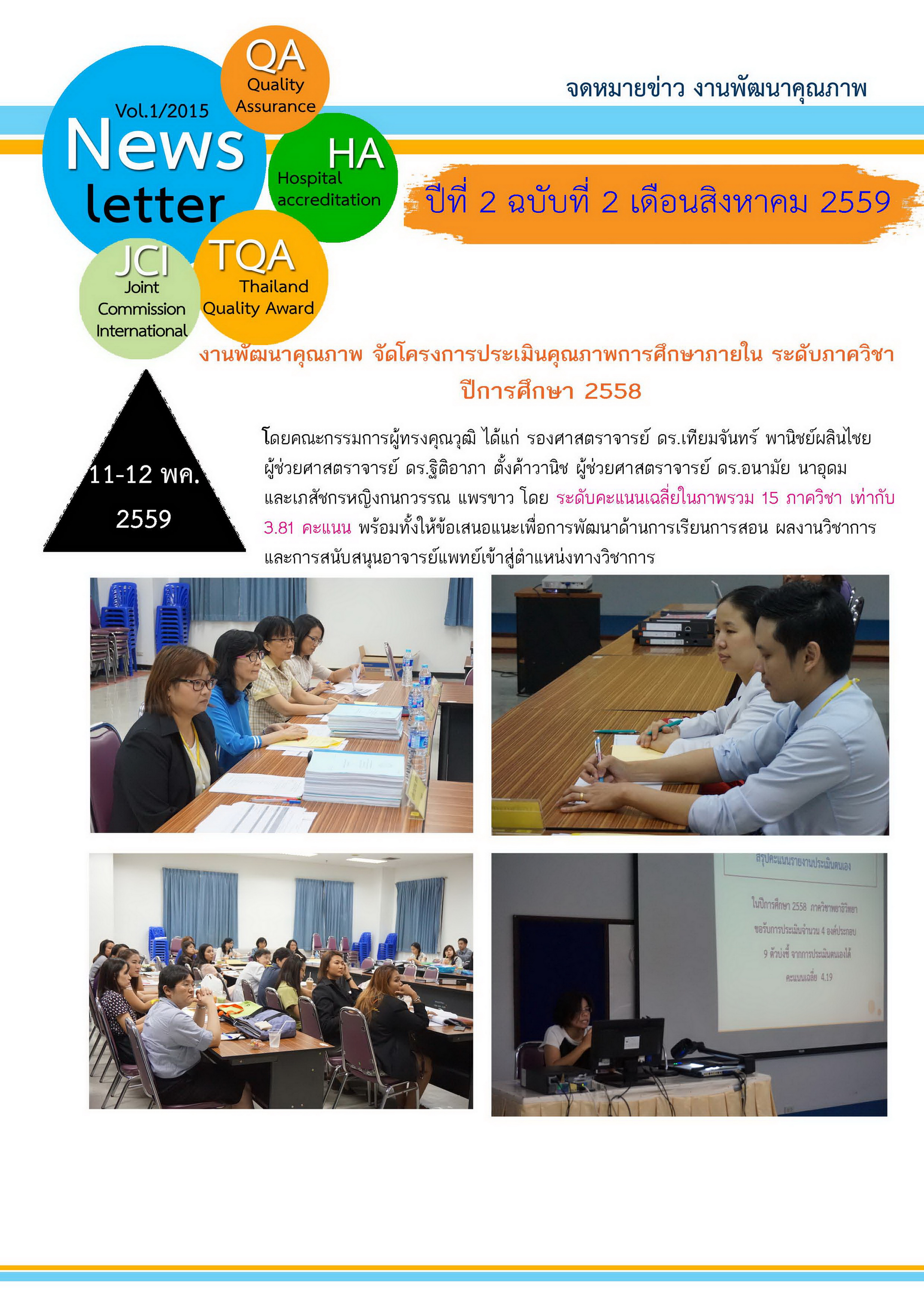 โครงการประเมินคุณภาพการศึกษาภายในระดับภาควิชา ประจำปีการศึกษา 2558