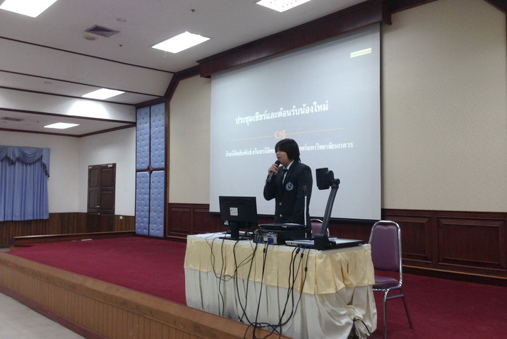 นสพ.ตวงรัตน์ เรืองเทพรัตน์ ประธานโครงการรับน้อง กล่าวถึงการประชุมเชียร์และต้อนรับน้องใหม่