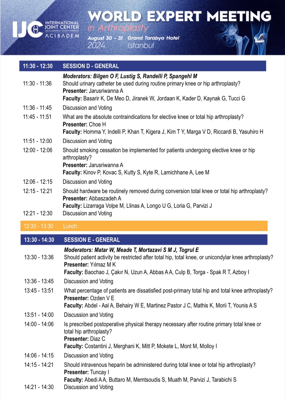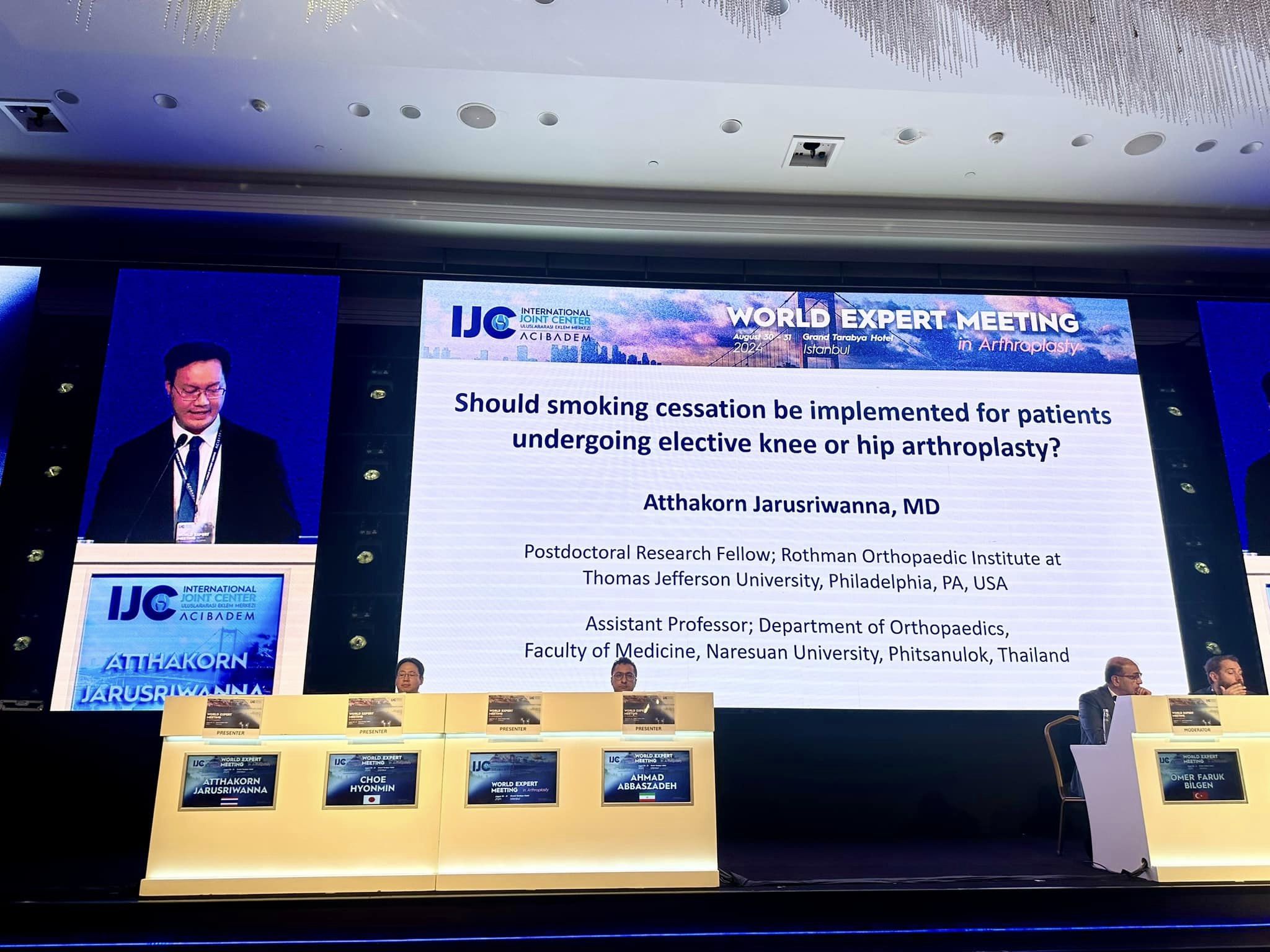 ผศ.นพ.อรรถกร จารุศรีวรรณา ได้เข้าร่วมประชุมและบรรยายหัวข้อ “Should urinary catheter be used during routine primary knee or hip arthroplasty?” และ ”Should smoking cessation be implemented for patients undergoing elective knee or hip arthroplasty?” ในงานประชุมวิชาการนานาชาติ World Expert Meeting in Arthroplasty ณ โรงแรม Grand Tarabya นครอิสตันบูล สาธารณรัฐตุรกี ซึ่งจัดขึ้นระหว่างวันที่ 30-31 สิงหาคม 2567