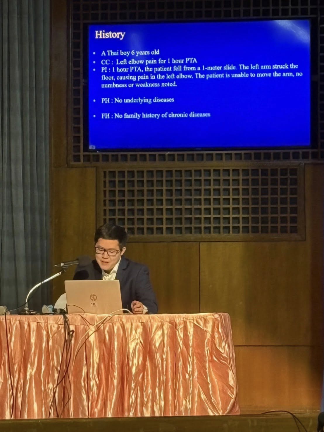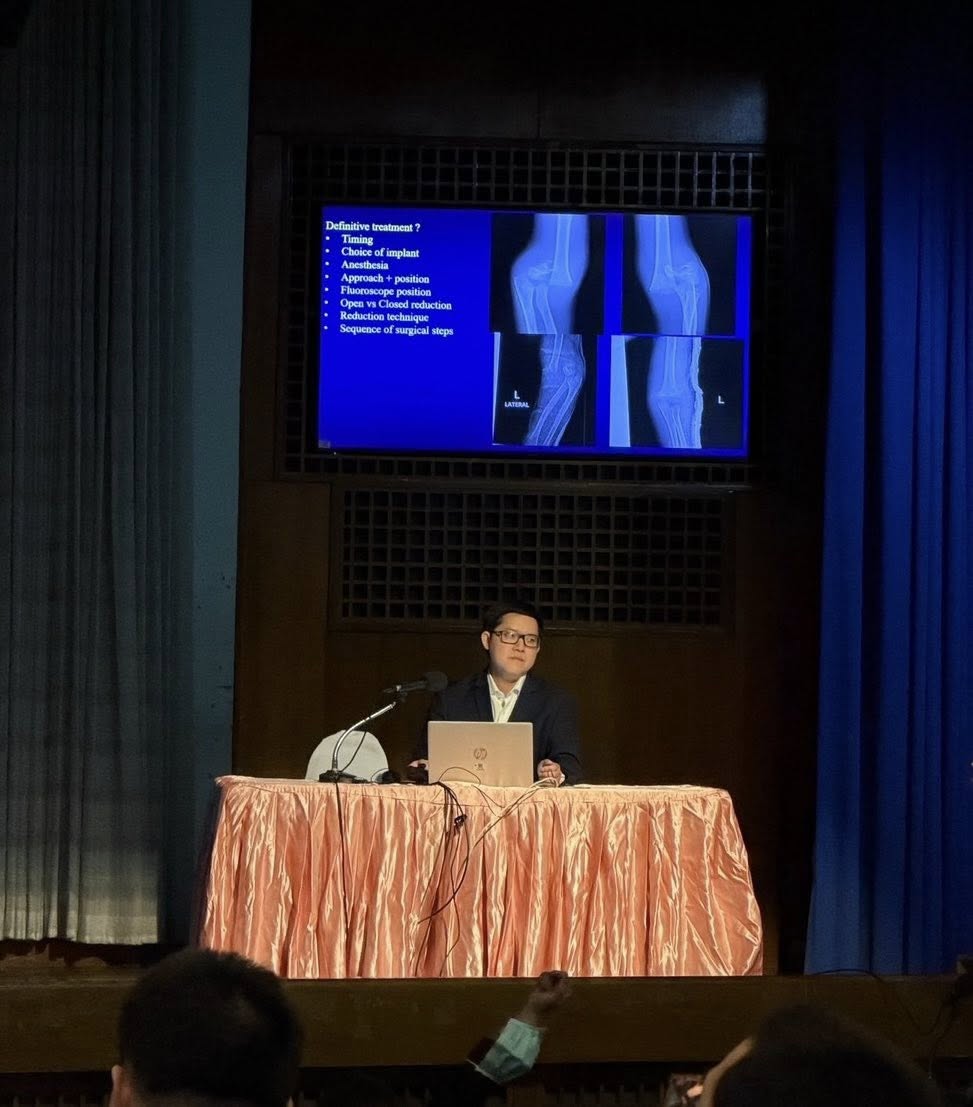 ในการประชุมครั้งนี้ อ. นพ.พนพล วรากรพิพัฒน์ อาจารย์อนุสาขาออร์โธปิดิกส์เด็ก ภาควิชาออร์โธปิดิกส์ มหาวิทยาลัยนเรศวร ได้รับเชิญให้นำเสนอกรณีศึกษาตัวอย่าง (Case Discussion) ในหัวข้อ Upper Extremity Trauma ซึ่งเป็นการนำเสนอแนวทางการวินิจฉัยและการรักษาผู้ป่วยอุบัติเหตุของแขนส่วนบนในเด็ก เพื่อแลกเปลี่ยนประสบการณ์ทางคลินิกกับผู้เข้าร่วมประชุม
