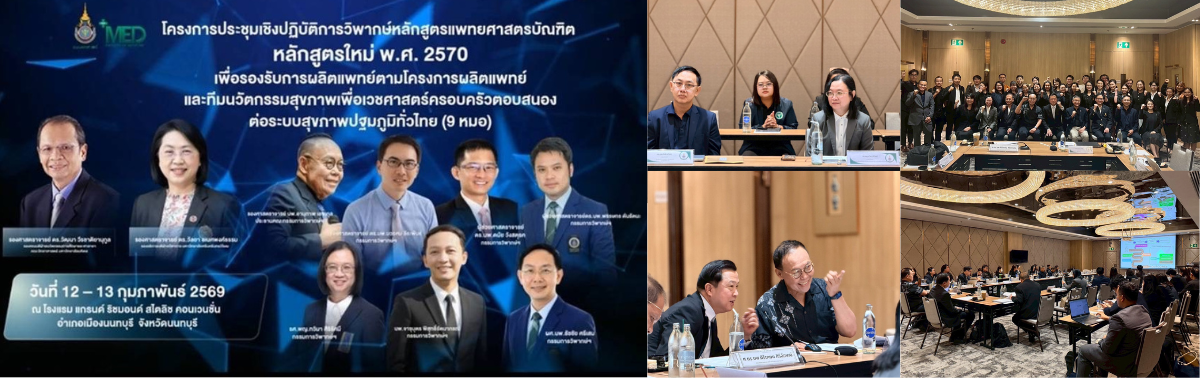 • ประชุมเชิงปฏิบัติการวิพากษ์หลักสูตรแพทยศาสตรบัณฑิตหลักสูตรใหม่ พ.ศ. 2570 สถาบันพระบรมราชชนก (ประกาศวันที่ : จันทร์ ที่ 16 กุมภาพันธ์ 2569)