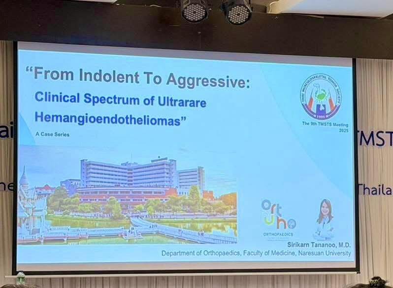 คณาจารย์อนุสาขาเนื้องอกกระดูกและระบบเนื้อเยื่อเกี่ยวพัน ภาควิชาออร์โธปิดิกส์ คณะแพทยศาสตร์ มหาวิทยาลัยนเรศวร เข้าร่วมประชุมและได้รับเกียรติให้บรรยาย รวมถึงทำหน้าที่ผู้ควบคุมการประชุม (Moderator) ในงานประชุมวิชาการ The 9th Thai Musculoskeletal Tumor Society (TMSTS) Meeting ซึ่งจัดขึ้นระหว่างวันที่ 18–19 ธันวาคม 2568 ณ โรงแรมบุรีศรีภู อำเภอหาดใหญ่ จังหวัดสงขลา -ผศ. นพ.มณฑล กาฬสีห์ ทำหน้าที่ผู้ควบคุมการประชุม (Moderator) ในหัวข้อ “AI in Musculoskeletal Oncology”