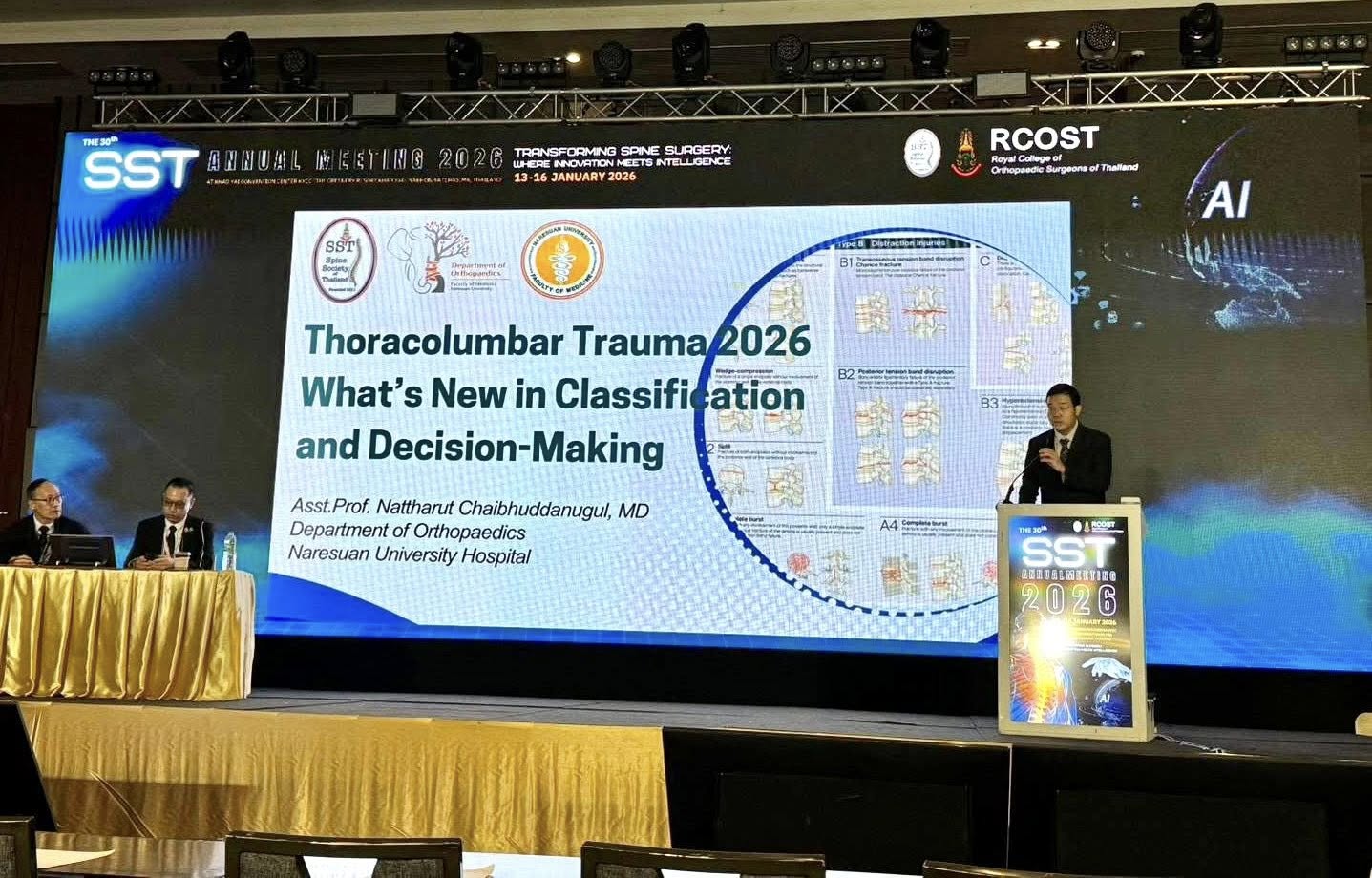 -ผศ. นพ.ณัฐรุจน์ ชัยพุทธานุกูล บรรยายหัวข้อ “Thoracolumbar Trauma 2026: What’s New in Classification and Decision-Making”