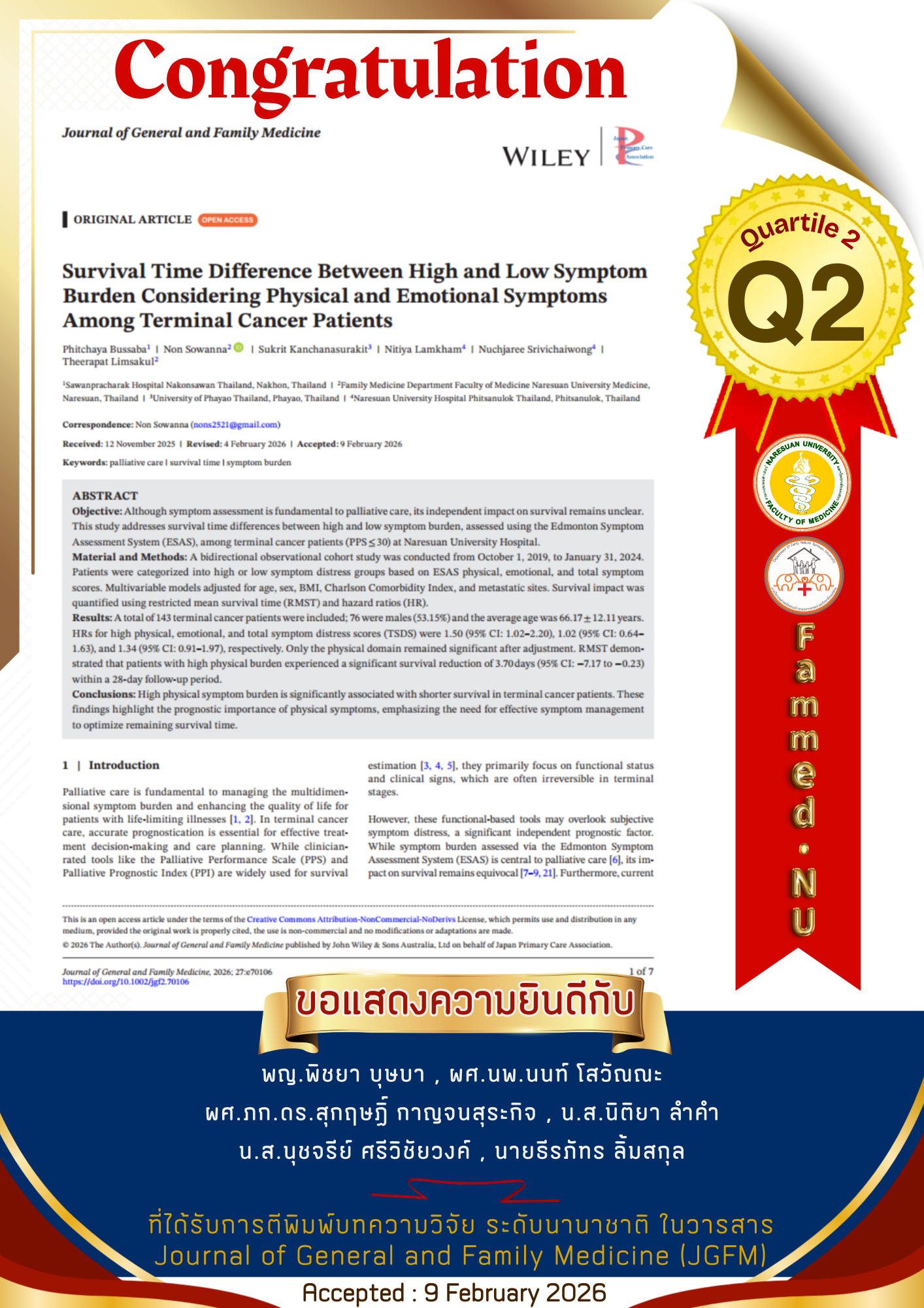 © 2026 ภาควิชาเวชศาสตร์ครอบครัว คณะแพทยศาสตร์ มหาวิทยาลัยนเรศวร