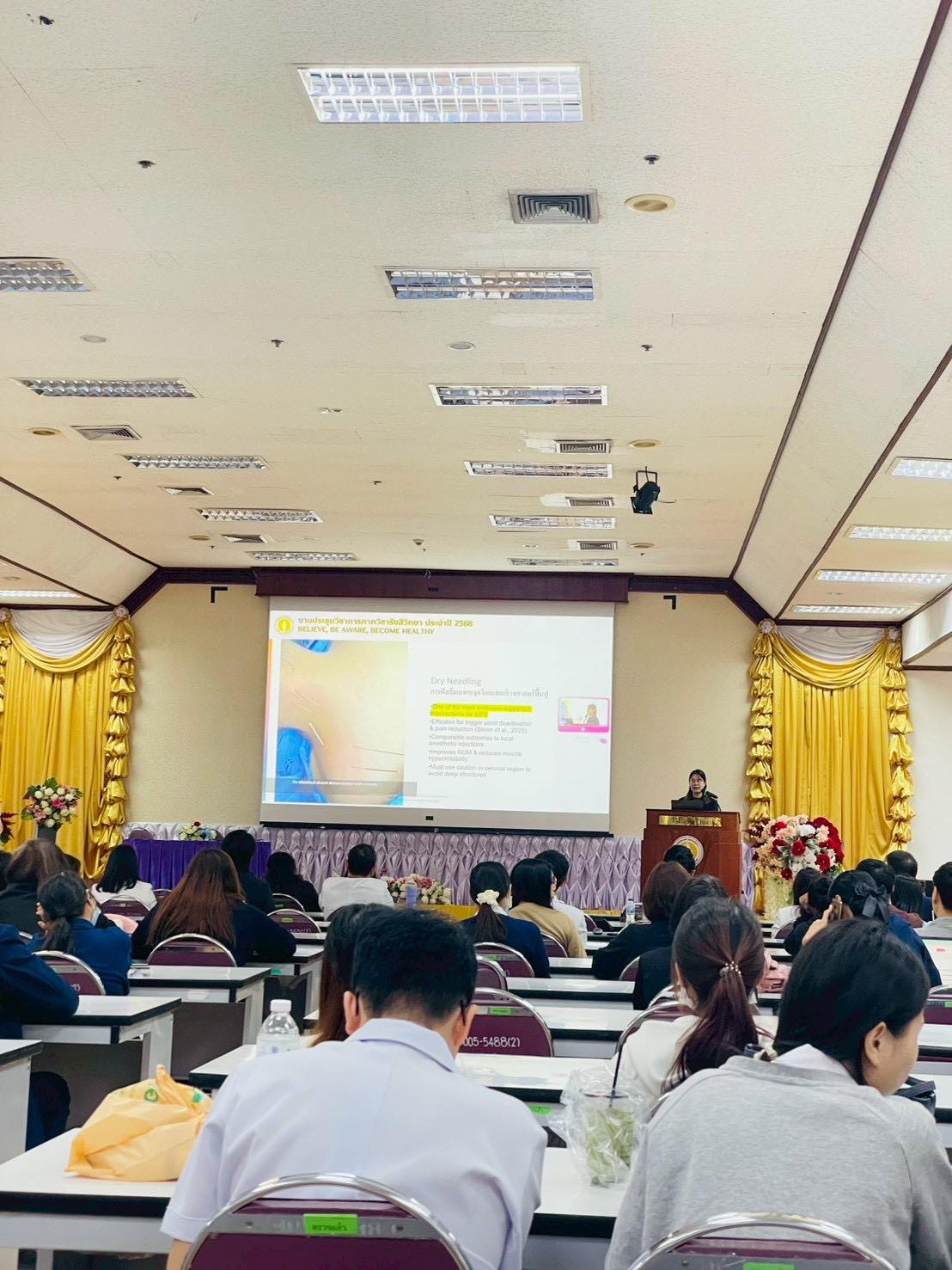 เมื่อวันที่ 21 พฤศจิกายน 2568 อาจารย์แพทย์หญิงสุวรรณิการ์  ปาลีได้รับเชิญให้เป็นวิทยากรบรรยายหัวข้อ Evidence-Based Approach for Neck–Shoulder Myofascial Pain ในโครงการของภาควิชารังสีวิทยา คณะแพทยศาสตร์ มหาวิทยาลัยนเรศวร จัดโครงการประชุมวิชาการประจำปี ภายใต้หัวข้อ “Believe, Be aware, Become Healthy”