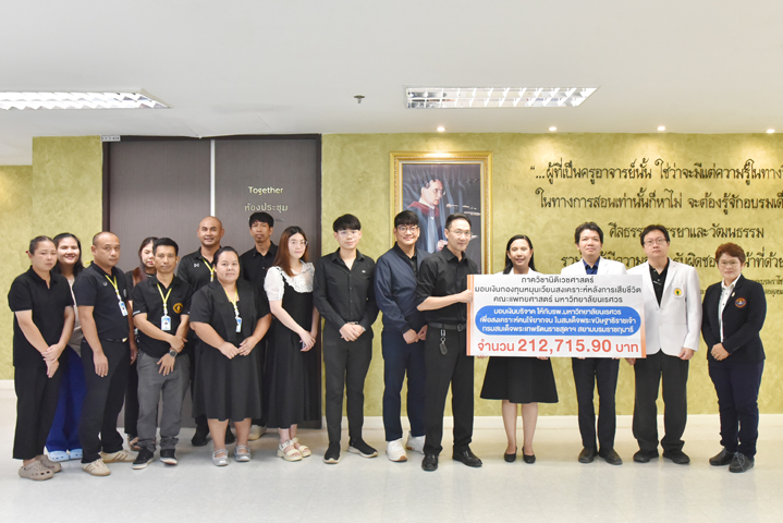 เมื่อวันที่ 19 พฤศจิกายน 2568 เวลา 11.00 น. ภาควิชานิติเวชศาสตร์ คณะแพทยศาสตร์ มหาวิทยาลัยนเรศวร นำโดย ผศ.นพ.จตุวิทย์ หอวรรณภากร รองคณบดีฝ่ายคุณภาพและวิจัย และรักษาการหัวหน้าภาควิชานิติเวชศาสตร์ พร้อมด้วย อาจารย์แพทย์ภาควิชานิติเวชศาสตร์ และบุคลากรภาควิชานิติเวชศาสตร์ ร่วมมอบเงินจาก กองทุนหมุนเวียนสงเคราะห์หลังการเสียชีวิต คณะแพทยศาสตร์ มหาวิทยาลัยนเรศวร ให้แก่โรงพยาบาลมหาวิทยาลัยนเรศวร รวมเป็นเงิน 1,512,715.90 บาท (หนึ่งล้านห้าแสนหนึ่งหมื่นสองพันเจ็ดร้อยสิบห้าบาทเก้าสิบสตางค์) เงินสนับสนุนดังกล่าวประกอบด้วยการมอบเพื่อสงเคราะห์คนไข้ยากจน ในสมเด็จพระขนิษฐาธิราชเจ้า กรมสมเด็จพระเทพรัตนราชสุดาฯ สยามบรมราชกุมารี จำนวน 212,715.90 บาท (สองแสนหนึ่งหมื่นสองพันเจ็ดร้อยสิบห้าบาทเก้าสิบสตางค์) การมอบเพื่อสนับสนุนศูนย์มะเร็ง โรงพยาบาลมหาวิทยาลัยนเรศวร จำนวน 1,000,000 บาท(หนึ่งล้านบาทถ้วน) และการมอบเพื่อจัดซื้อวัสดุและครุภัณฑ์ทางการแพทย์ จำนวน 300,000 บาท (สามแสนบาทถ้วน)