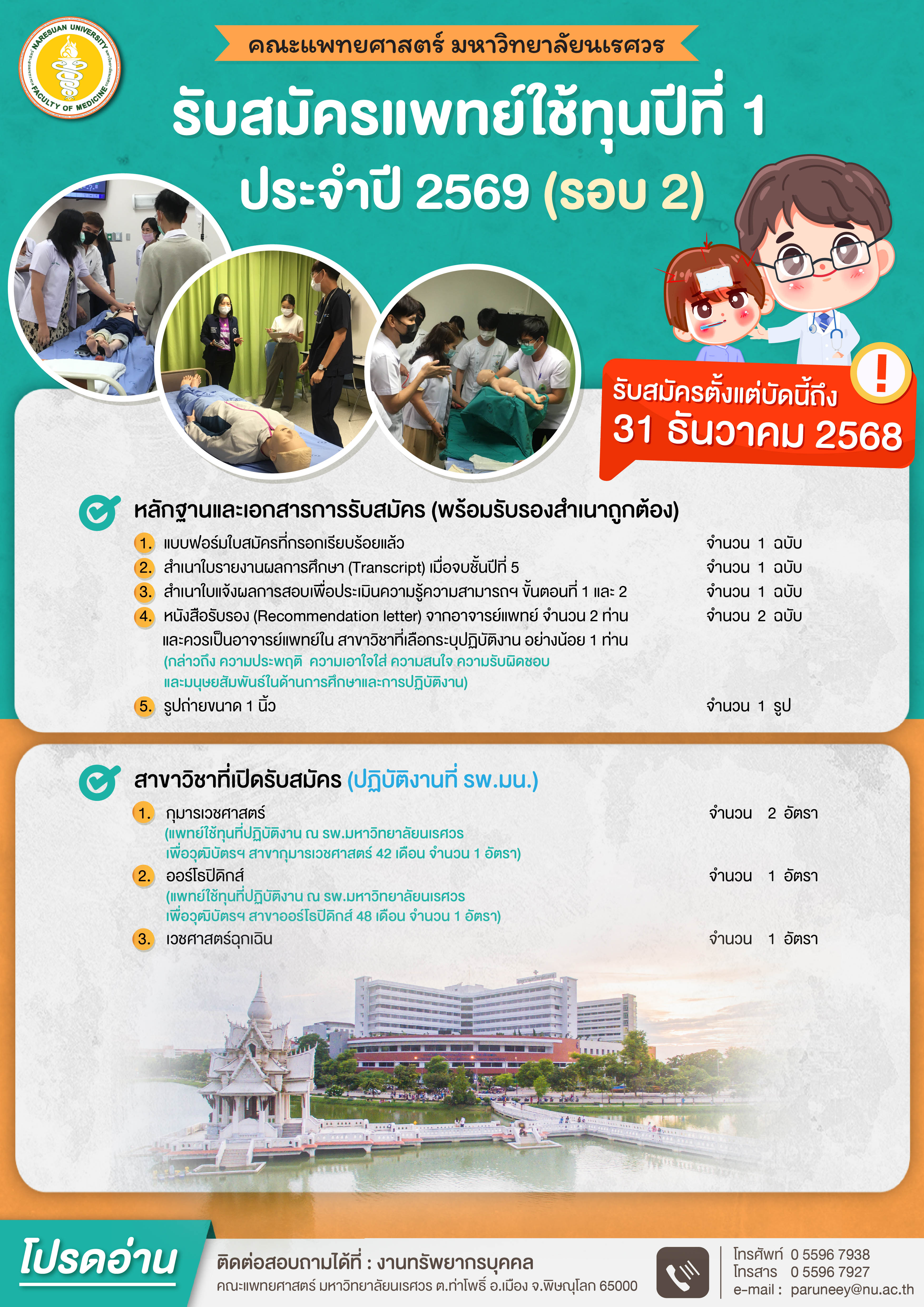 รับสมัครแพทย์ใช้ทุน ปีที่ 1 ประจำปี 2569 (รอบ2) ตั้งแต่บัดนี้ถึง 31 ธ.ค.68
