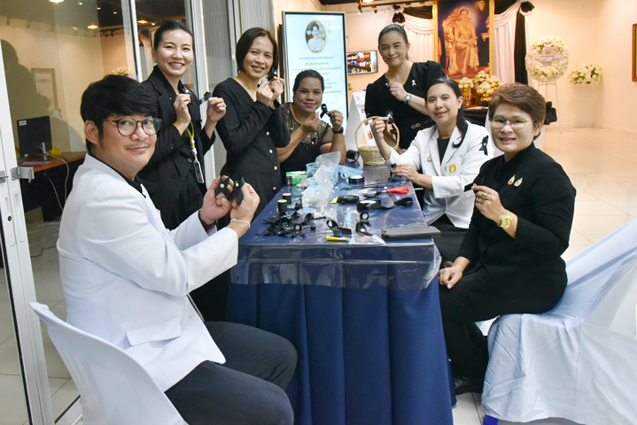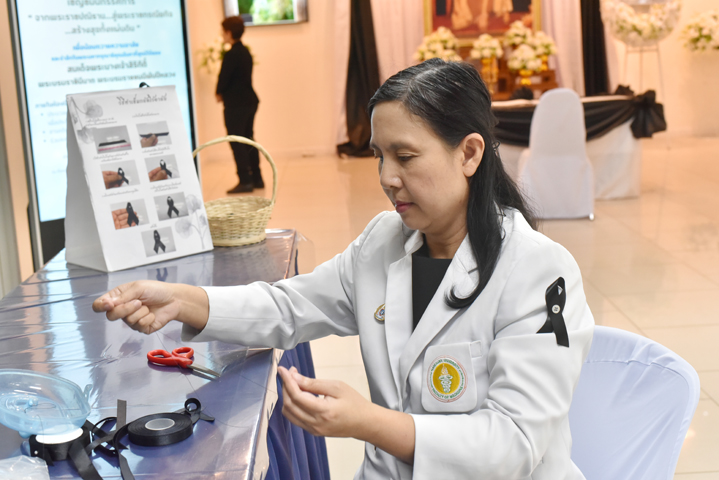 - กิจกรรมทำโบว์ติดเสื้อไว้อาลัย โดยไม่เสียค่าใช้จ่ายใด ๆ