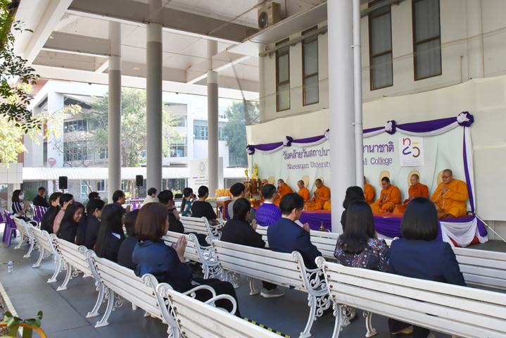 เมื่อวันที่ 26 มกราคม 2569 เวลา 09.00 น. ผู้ช่วยศาสตราจารย์ แพทย์หญิงพิริยา นฤขัตรพิชัย คณบดีคณะแพทยศาสตร์ มหาวิทยาลัยนเรศวร ร่วมทำบุญและมอบของที่ระลึกเพื่อแสดงความยินดี เนื่องในโอกาส วันสถาปนาครบรอบ 25 ปี วิทยาลัยนานาชาติ มหาวิทยาลัยนเรศวร โดย รองศาสตราจารย์ ดร.สิริมาส เฮงรัศมี ผู้อำนวยการวิทยาลัยนานาชาติ มหาวิทยาลัยนเรศวร เป็นผู้รับมอบ ท่ามกลางบรรยากาศแห่งความอบอุ่นและความยินดี ณ วิทยาลัยนานาชาติ มหาวิทยาลัยนเรศวร