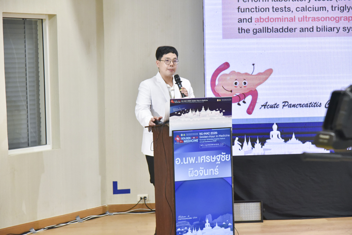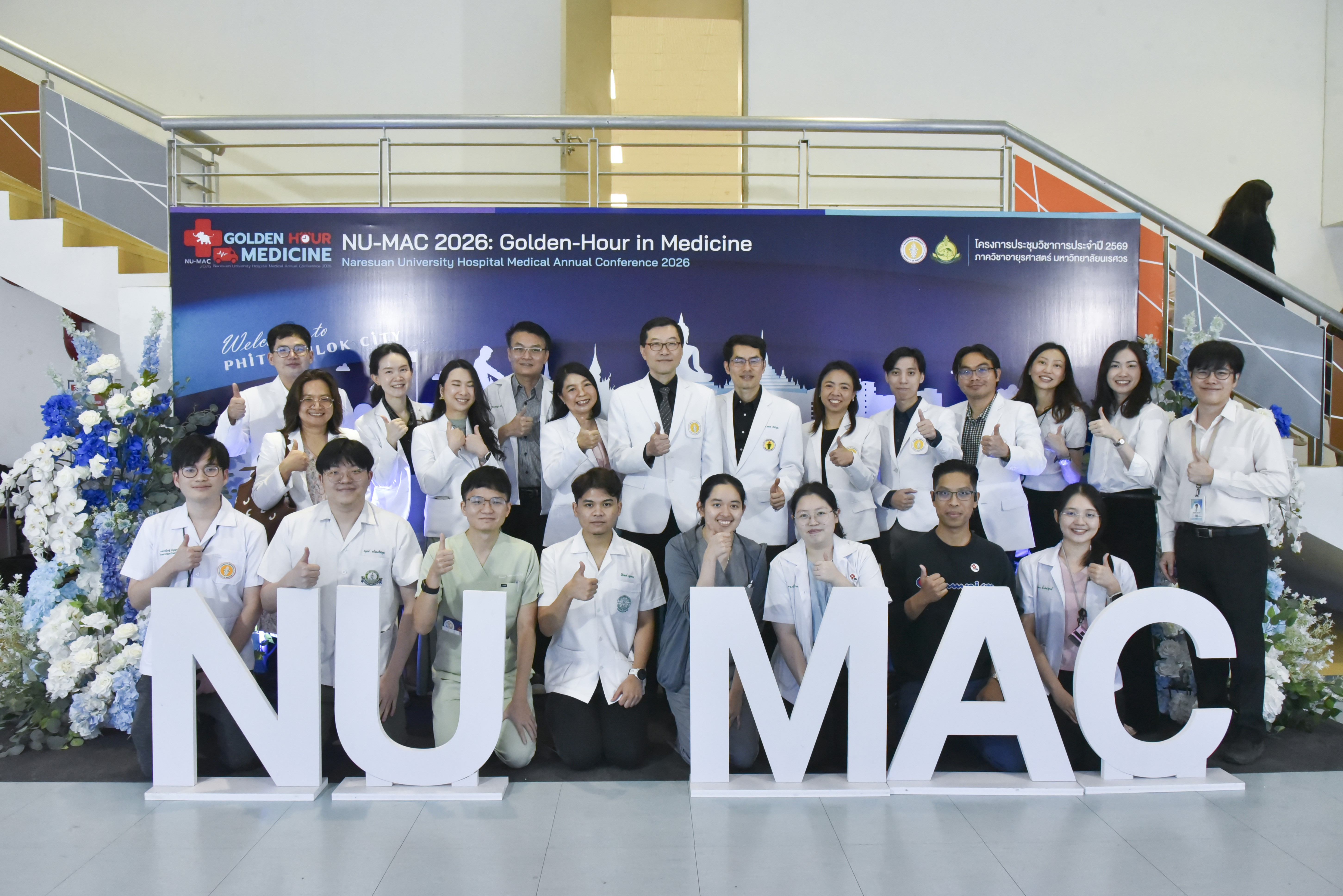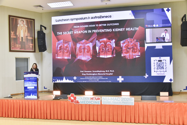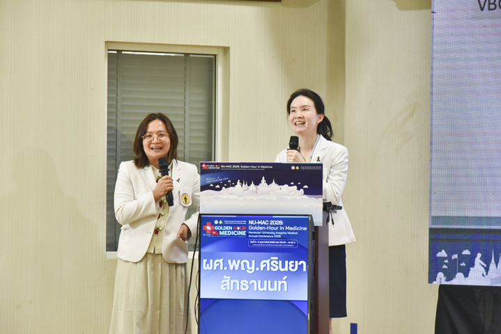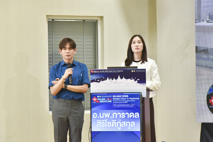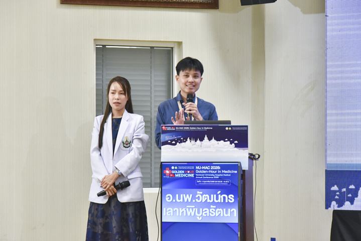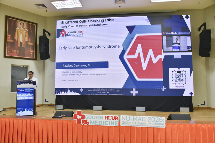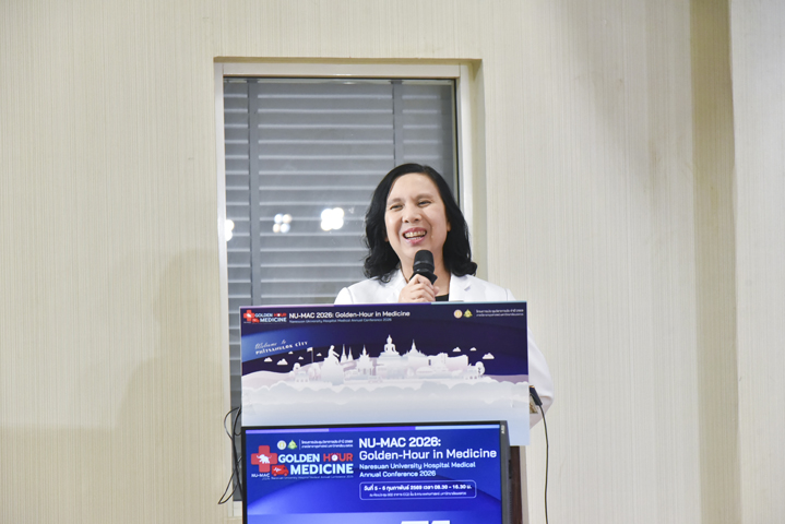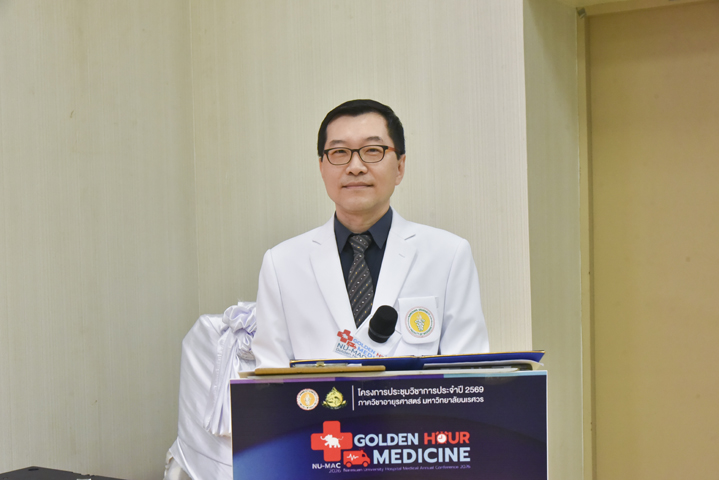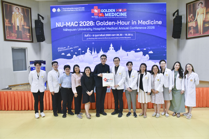 วันที่ 5 กุมภาพันธ์ 2569 ภาควิชาอายุรศาสตร์ คณะแพทยศาสตร์ มหาวิทยาลัยนเรศวร จัดโครงการประชุมวิชาการภาควิชาอายุรศาสตร์ ประจำปี 2569 Naresuan University Hospital's - Medicine Annual Conference 2026: NU-MAC 2026 ในหัวข้อ Golden-hour in Medicine โดยรับเกียรติจาก ผศ.พญ.พิริยา นฤขัตรพิชัย คณบดีคณะแพทยศาสตร์ เป็นประธานในพิธีเปิด และกล่าวต้อนรับผู้เข้าร่วมประชุม พร้อมด้วย ผศ.ดร.นพ.อภิรัตน์ หวังธีระประเสริฐ หัวหน้าภาควิชา และอาจารย์แพทย์ภาควิชาอายุรศาสตร์ ร่วมเป็นเกียรติในพิธีเปิด ณ ห้องประชุม CC2-802 (ห้องสโลป) ชั้น 8 อาคารเฉลิมพระเกียรติ 7 รอบ พระชนมพรรษา 2 คณะแพทยศาสตร์ มหาวิทยาลัยนเรศวร จ.พิษณุโลก