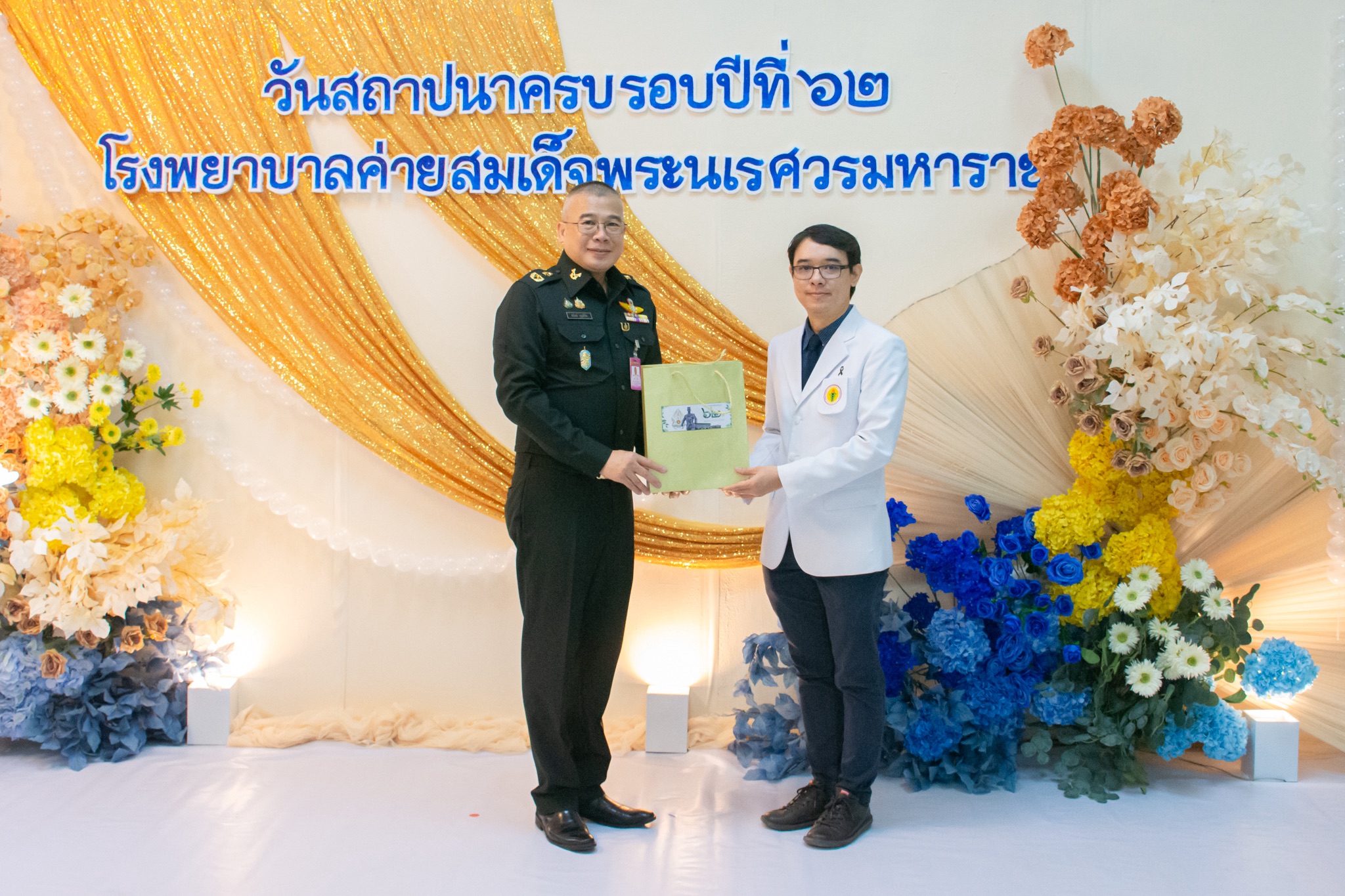 เมื่อวันที่ 23 มกราคม 2569 ผู้ช่วยศาสตราจารย์ นายแพทย์พรเทพ รัชฎาภรณ์กุล รักษาการในตำแหน่งรองผู้อำนวยการฝ่ายบริการ โรงพยาบาลมหาวิทยาลัยนเรศวร ร่วมพิธีทำบุญและมอบดอกไม้เพื่อแสดงความยินดี เนื่องในโอกาสครบรอบ 62 ปี วันสถาปนาโรงพยาบาลค่ายสมเด็จพระนเรศวรมหาราช ณ ห้องประชุมชินราชา ชั้น3 อาคารอำนวยการ โรงพยาบาลค่ายสมเด็จพระนเรศวรมหาราช อำเภอเมือง จังหวัดพิษณุโลก