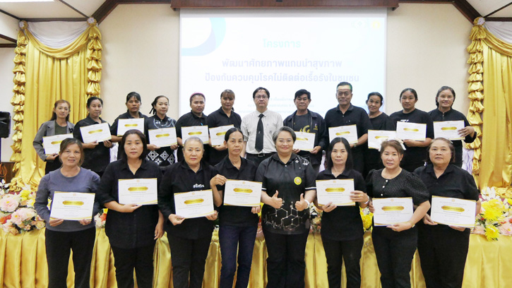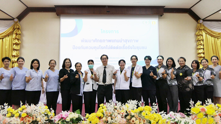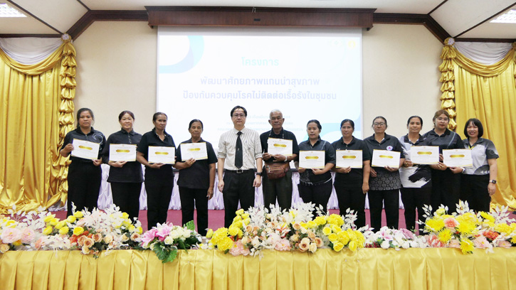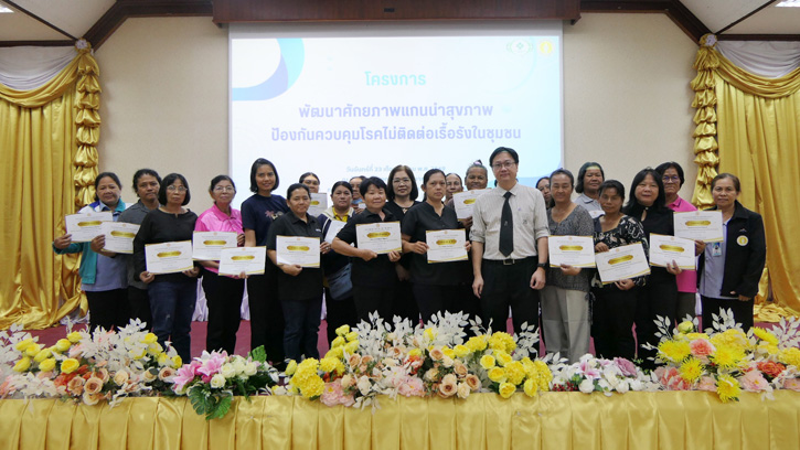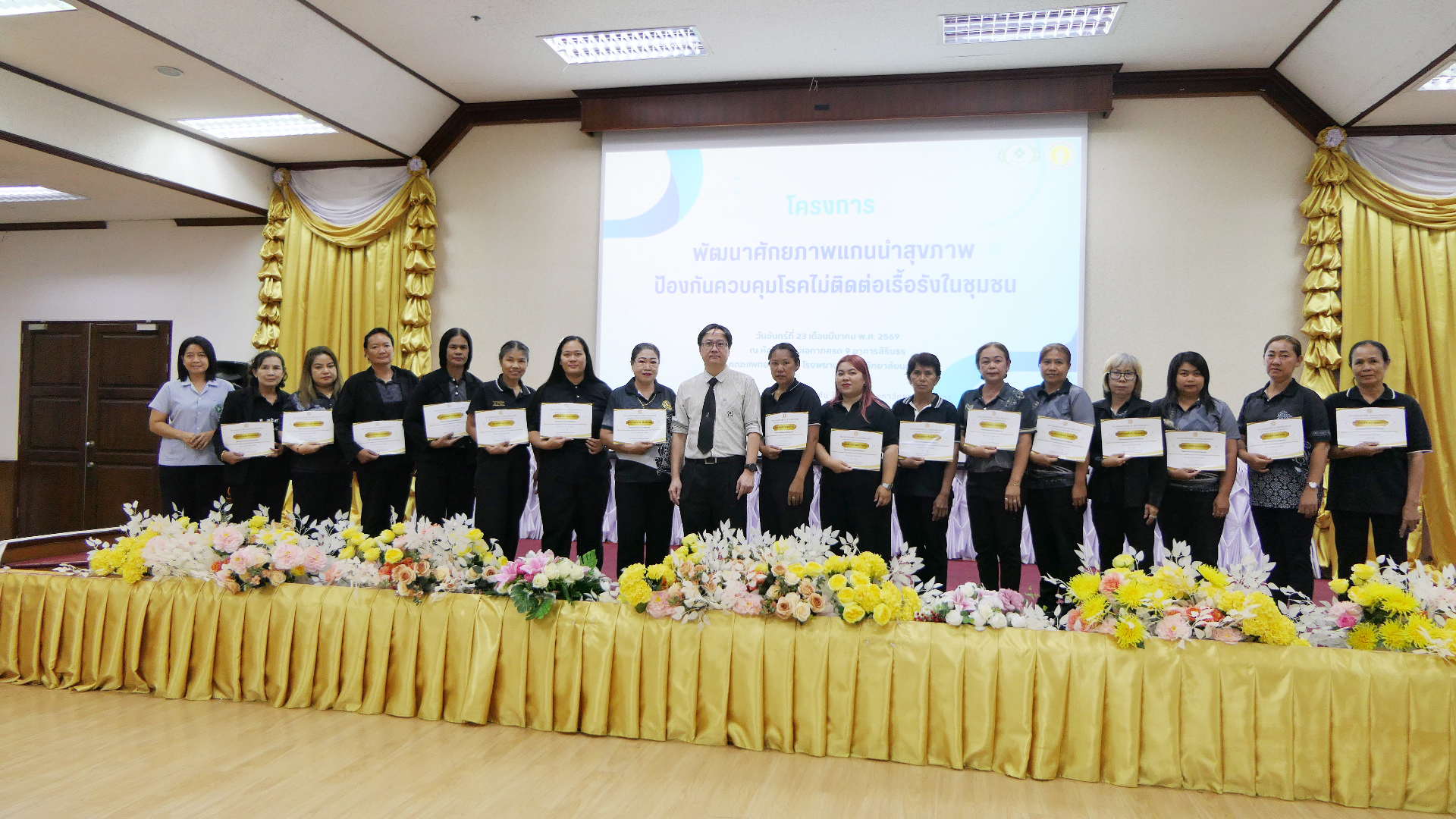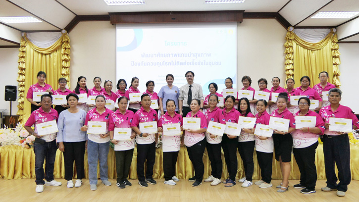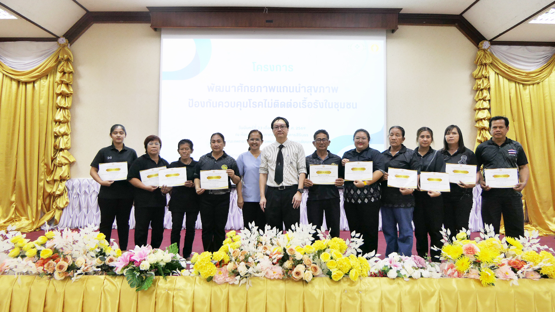 นอกจากนี้ ยังมีการฝึกปฏิบัติผ่านฐานการเรียนรู้ 5 ฐาน ได้แก่ ด้านโภชนาการ การใช้ยา การออกกำลังกาย การตรวจวัดสุขภาพ และเทคนิคการปรับเปลี่ยนพฤติกรรมสุขภาพ เพื่อให้ผู้เข้าร่วมสามารถนำไปประยุกต์ใช้ในชุมชนได้จริง ซึ่งมีวัตถุประสงค์เพื่อ พัฒนาศักยภาพแกนนำสุขภาพในชุมชนให้มีความรู้ ความเข้าใจ และทักษะในการป้องกันและควบคุมโรคไม่ติดต่อเรื้อรัง สามารถนำความรู้ไปประยุกต์ใช้ในการดูแลสุขภาพตนเองและประชาชนในชุมชน รวมทั้งส่งเสริมให้เกิดการปรับเปลี่ยนพฤติกรรมสุขภาพ เพื่อลดความเสี่ยงต่อการเกิดโรคและภาวะแทรกซ้อนอย่างยั่งยืน