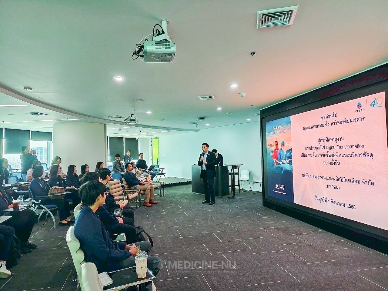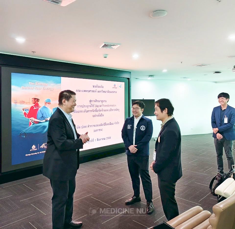 เมื่อวันที่ 1 สิงหาคม 2568 ผศ.นพ.พีระพงศ์ เธียราวัฒน์ รองคณบดีฝ่ายบริหารและประกันคุณภาพ, ผศ.นพ.ภูศิษฏ์ เรืองวาณิชยกุล รองคณบดีฝ่ายพัสดุ พร้อมบุคลากรคณะแพทยศาสตร์ มหาวิทยาลัยนเรศวร เข้าศึกษาดูงาน ในโครงการศึกษาดูงานการนำกระบวนการ Digital Transformation มาใช้เพื่อยกระดับการจัดซื้อ จัดจ้างและการบริหารพัสดุอย่างยั่งยืน โดยมีผู้บริหาร บริษัท ปตท.สำรวจและผลิตปิโตรเลียม จำกัด (มหาชน) กรุงเทพมหานคร ให้การต้อนรับอย่างอบอุ่น และนำชมการทำงานด้านต่าง ๆ ของบริษัท