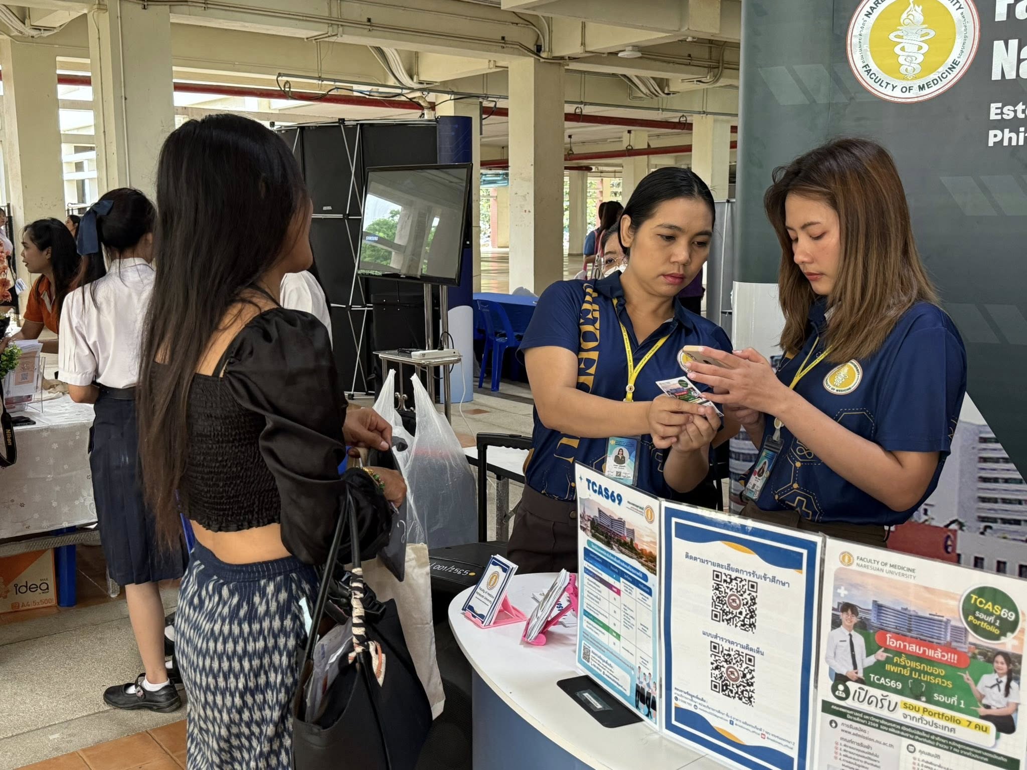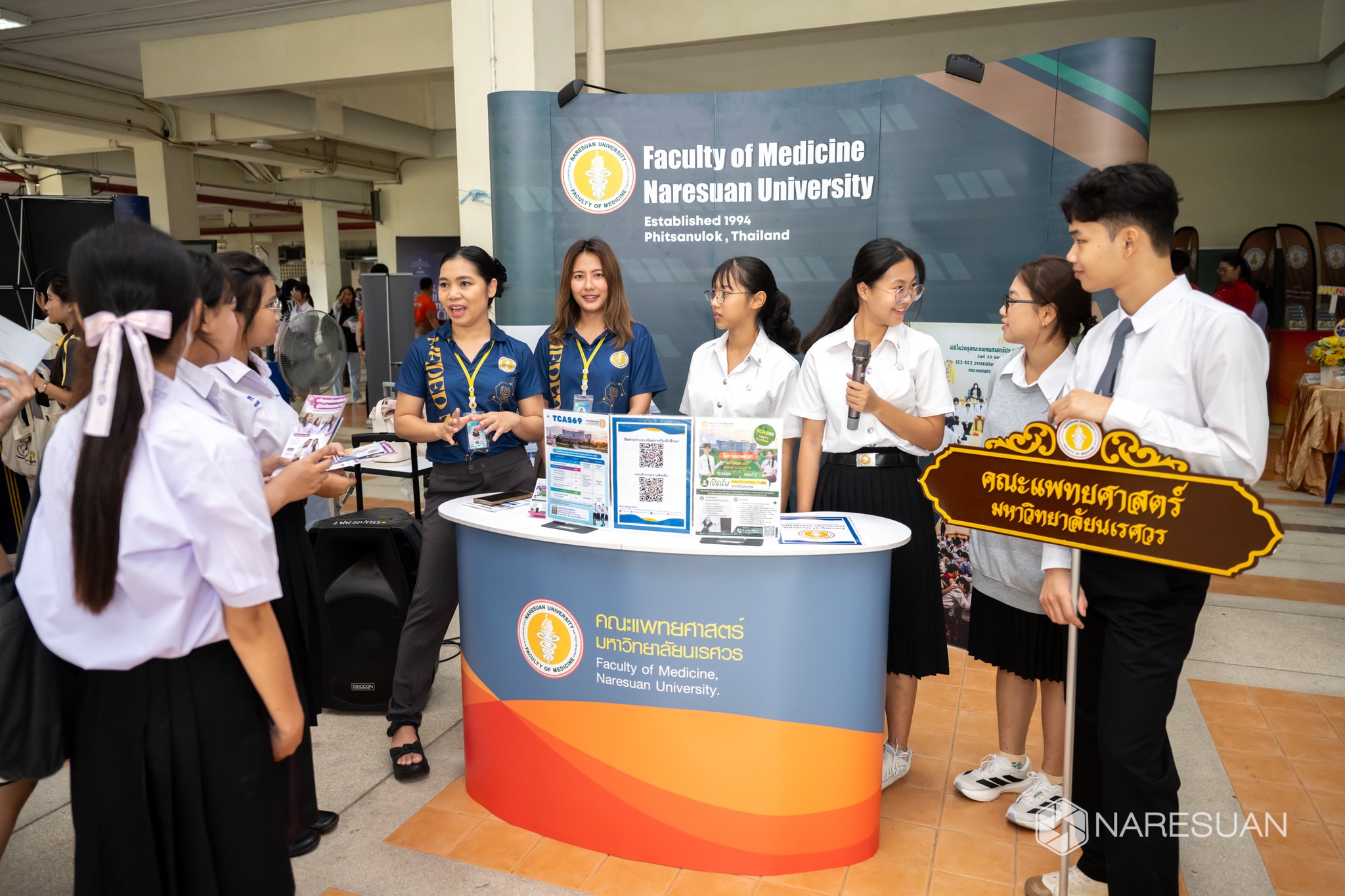 เมื่อวันที่ 18 สิงหาคม 2568 ผศ.พญ.พิริยา นฤขัตรพิชัย คณบดีคณะแพทยศาสตร์ เข้าร่วมในกิจกรรม” NU EXPLORE Open House 2025 ค้นหาคณะที่ใช่...ในแบบของตนเอง” โดยได้แนะนำข้อมูลหลักสูตร จุดเด่น และศักยภาพของคณะแพทยศาสตร์ ให้แก่นักเรียนระดับมัธยมศึกษาตอนปลาย ที่เข้าร่วมกิจกรรมและแนะแนวการเรียนรู้และโอกาสในการพัฒนาตนเอง เพื่อเป็นแนวทางในการเลือกเส้นทางการศึกษาที่เหมาะสมกับความสนใจของแต่ละบุคคล