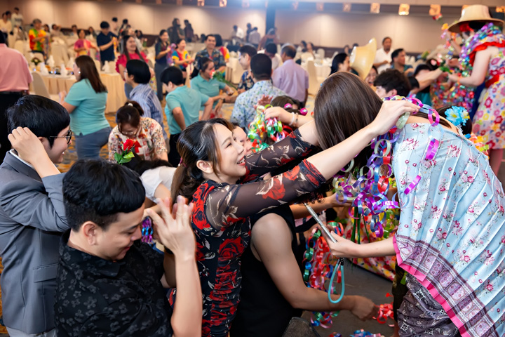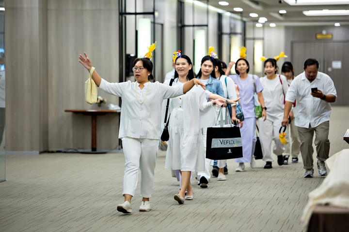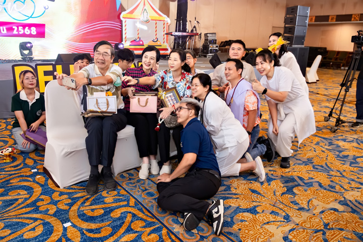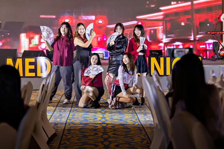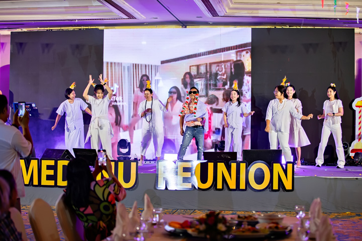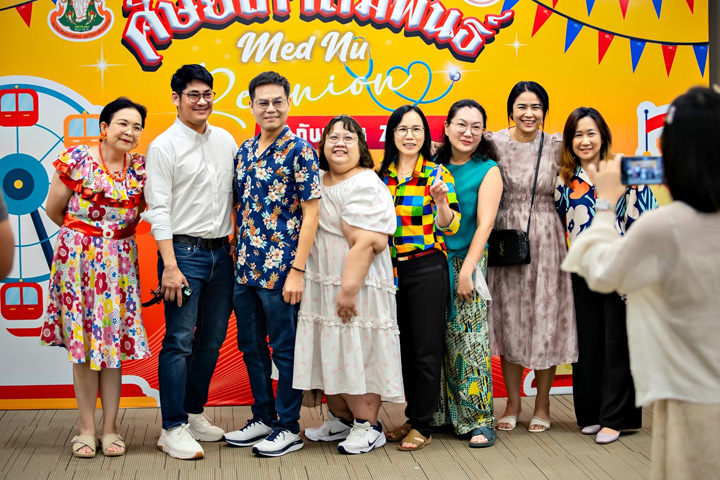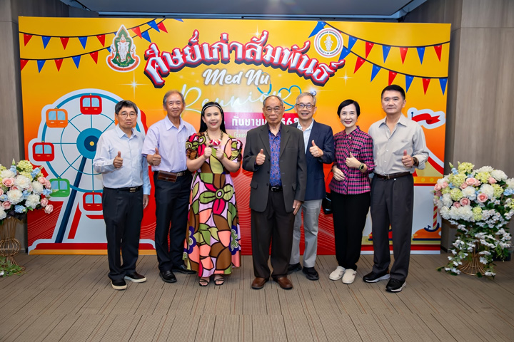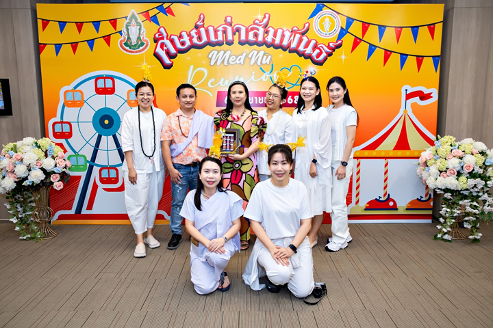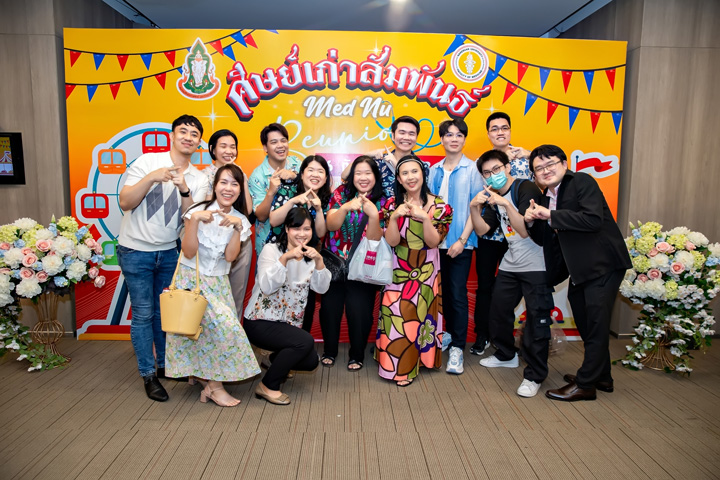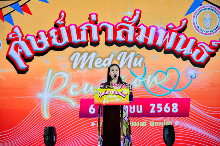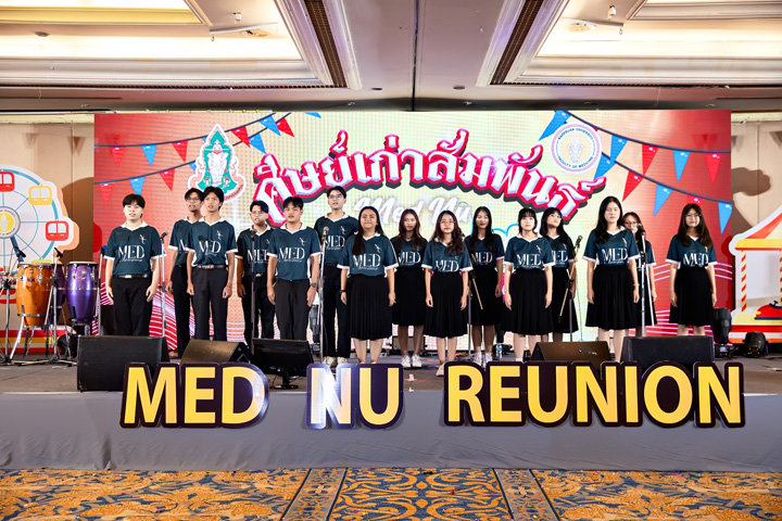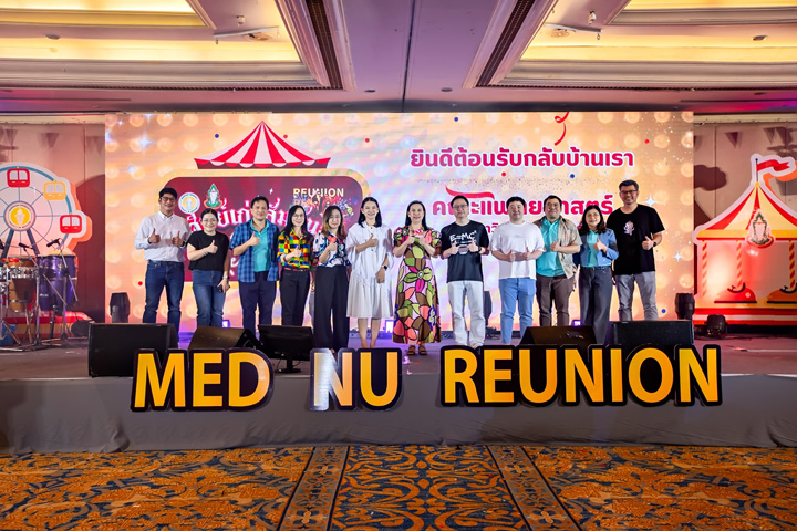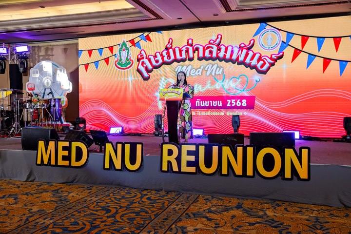 เมื่อวันที่ 6 กันยายน 2568 ที่ผ่านมา คณะแพทยศาสตร์ มหาวิทยาลัยนเรศวร ร่วมกับ สมาคมศิษย์เก่าแพทย์ มหาวิทยาลัยนเรศวร ได้จัดกิจกรรม “MED NU REUNION” ณ ห้อง Convention Hall โรงแรมท็อปแลนด์ จังหวัดพิษณุโลก เพื่อเป็นเวทีสำหรับการพบปะสังสรรค์ของศิษย์เก่าแพทย์นเรศวรจากทั่วประเทศ ภายใต้บรรยากาศอบอุ่นและเป็นกันเอง ในธีม “งานวัด” ซึ่งสร้างสีสันให้กับงานด้วยการประดับตกแต่งอย่างสวยงาม พร้อมกลิ่นอายวัฒนธรรมไทยย้อนยุค