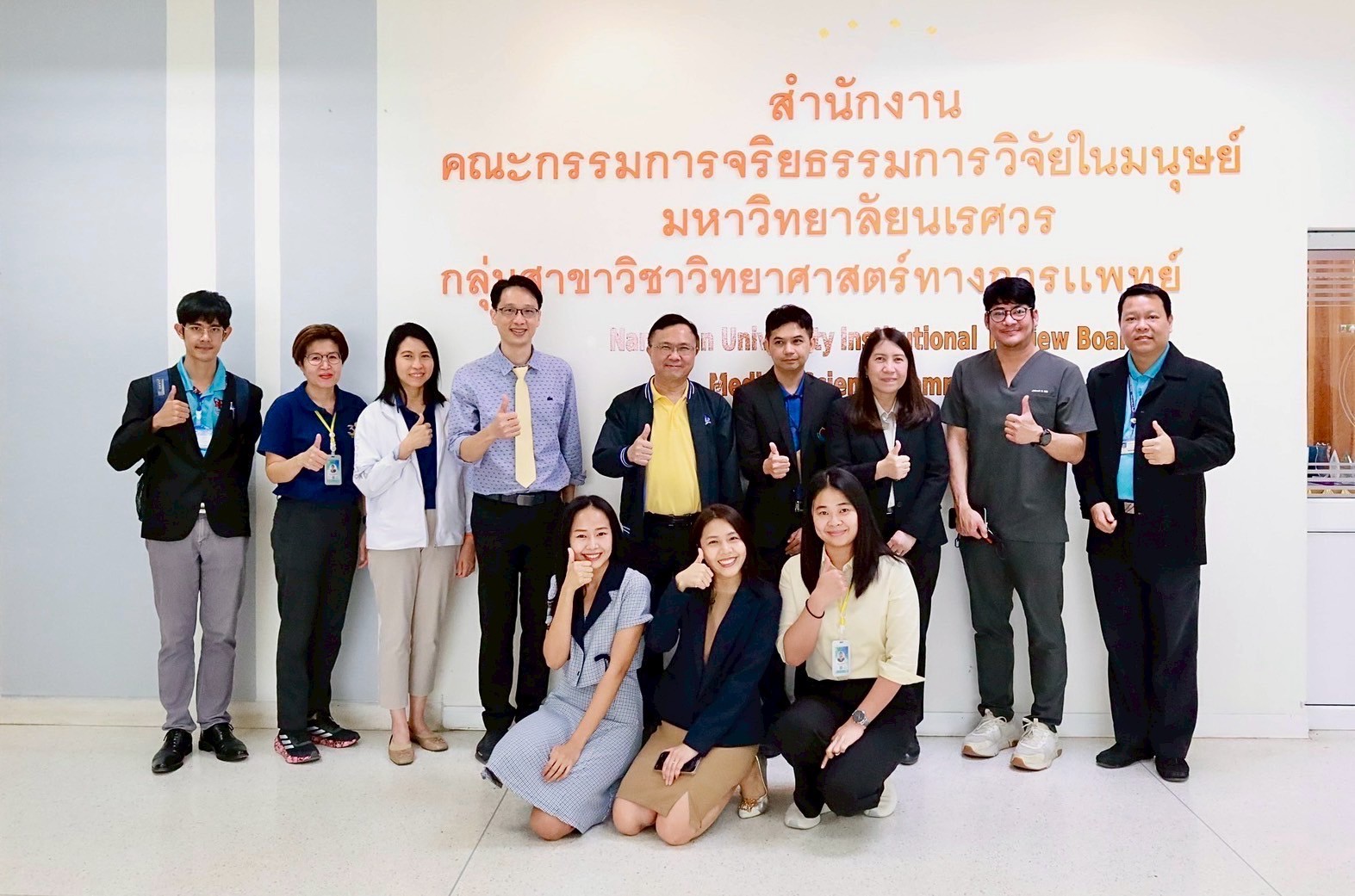 เมื่อวันที่ 15 กันยายน 2568 เวลา 13.00 น. ผศ.นพ.จตุวิทย์ หอวรรณภากร รองคณบดีฝ่ายคุณภาพและวิจัย และ รศ.นพ.อาทิตย์ เหล่าเรืองธนา ผู้ช่วยคณบดีฝ่ายวิจัย พร้อมด้วยบุคลากรหน่วยทดลองทางคลินิก คณะแพทยศาสตร์ มหาวิทยาลัยนเรศวร ร่วมให้การต้อนรับ นพ.ศุภกิจ ศิริลักษณ์ ผู้อำนวยการสถาบันวิจัยระบบสาธารณสุข (สวรส.) ดร.ภญ.นพคุณ ธรรมธัชอารี ผู้จัดการงานวิจัยอาวุโส นายสุรัติ ฉัตรไชยาฤกษ์ ผู้จัดการสำนักบริหารกลาง และ ศ.พญ.ขวัญชนก ยิ้มแต้ จากเครือข่ายศูนย์วิจัยคลินิก คณะแพทยศาสตร์โรงพยาบาลรามาธิบดี พร้อมคณะ เยี่ยมชมหน่วยทดลองทางคลินิก และสำนักงานคณะกรรมการจริยธรรมการวิจัยในมนุษย์ มหาวิทยาลัยนเรศวร
