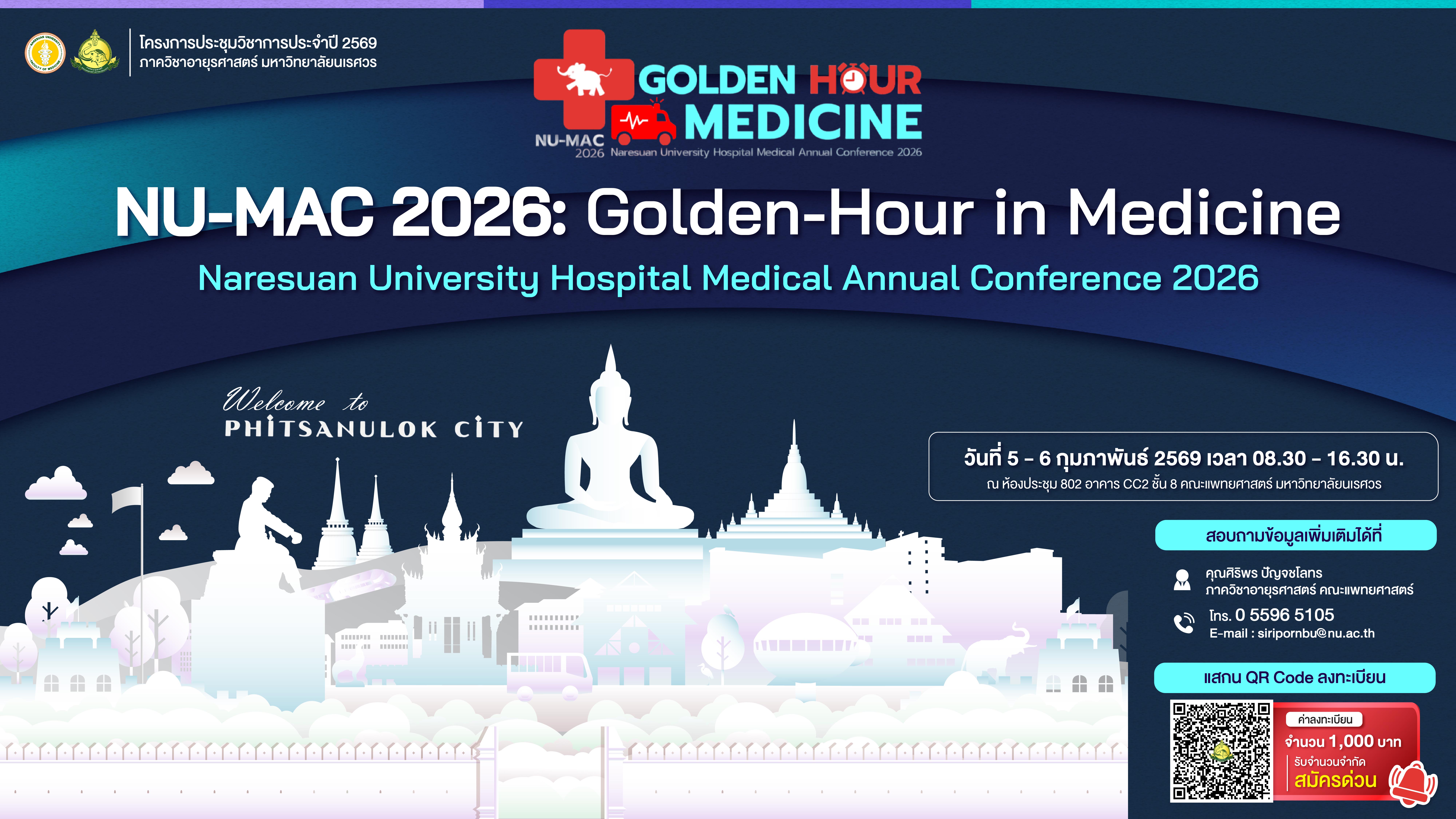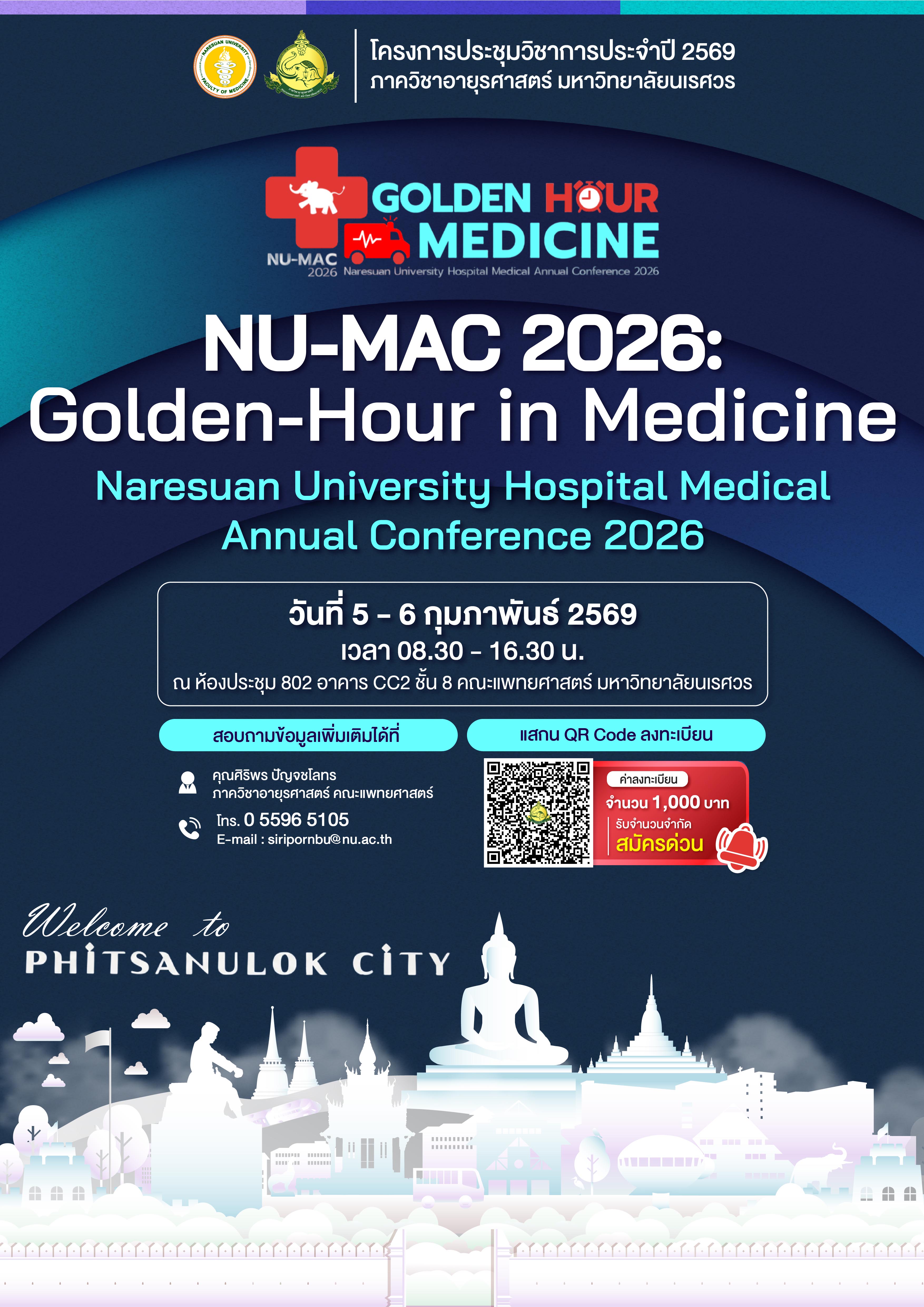 งานประชุม NU-MAC 2026 ภาควิชาอายุรศาสตร์ คณะแพทยศาสตร์ มหาวิทยาลัยนเรศวร : Golden-Hour in Medicine Onsite