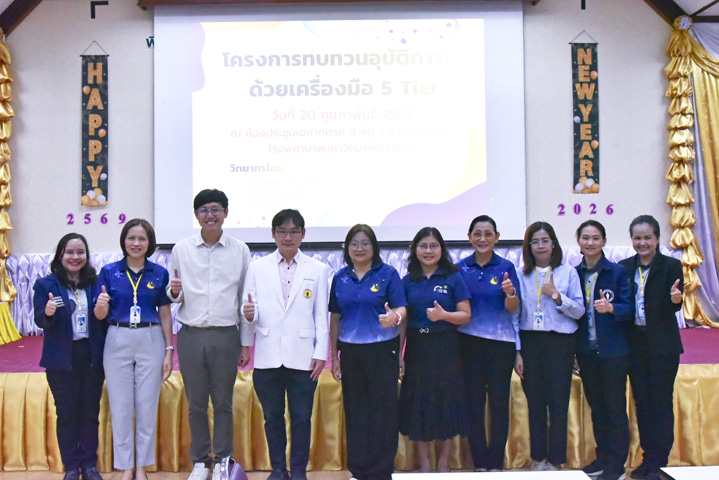 เมื่อวันที่ 20 กุมภาพันธ์ 2569 ผศ.นพ.พีระพงศ์ เธียราวัฒน์ รองคณบดีฝ่ายบริหารและประกันคุณภาพ คณะแพทยศาสตร์ มหาวิทยาลัยนเรศวร กล่าวต้อนรับผู้เข้าร่วม “โครงการทบทวนอุบัติการณ์ด้วยเครื่องมือ 5 Tier” ณ ห้องประชุมเอกาทศรถ 9 ชั้น 3 อาคารสิรินธร โรงพยาบาลมหาวิทยาลัยนเรศวร